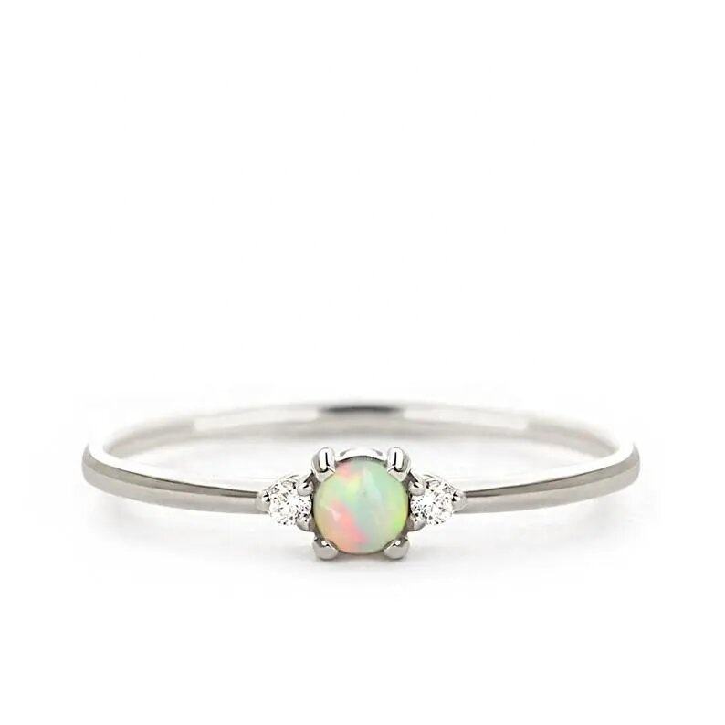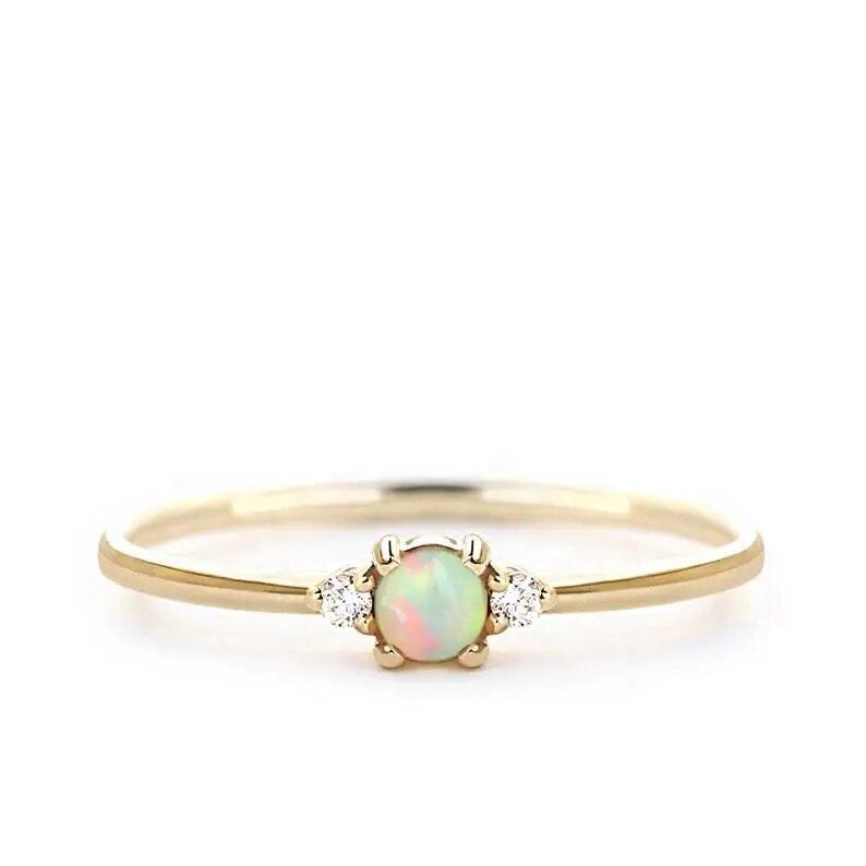 คอลเลกชั่นยอดนิยมแหวนโอปอลเอธิโอเปีย3มม. ทรงวงแหวนแบบง่ามตั้งทำจากหินแข็ง18K เครื่องประดับสำหรับปาร์ตี้สำหรับผู้หญิง
