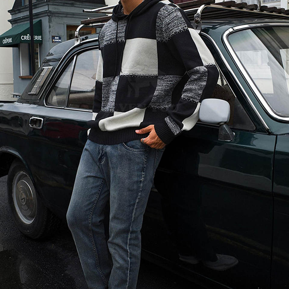 เสื้อฮู้ดแบบสวมหัวสำหรับทุกเพศเสื้อมีฮู้ดลำลองสีบล็อกทันสมัย