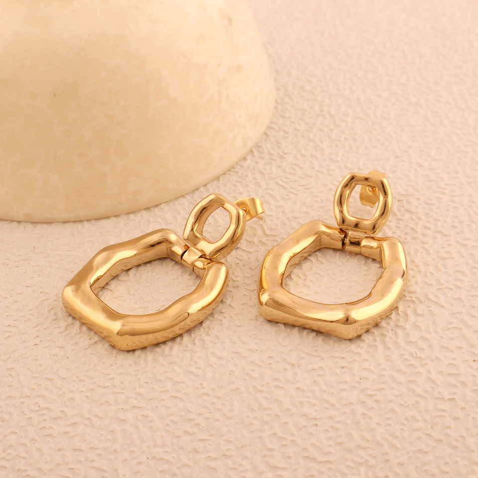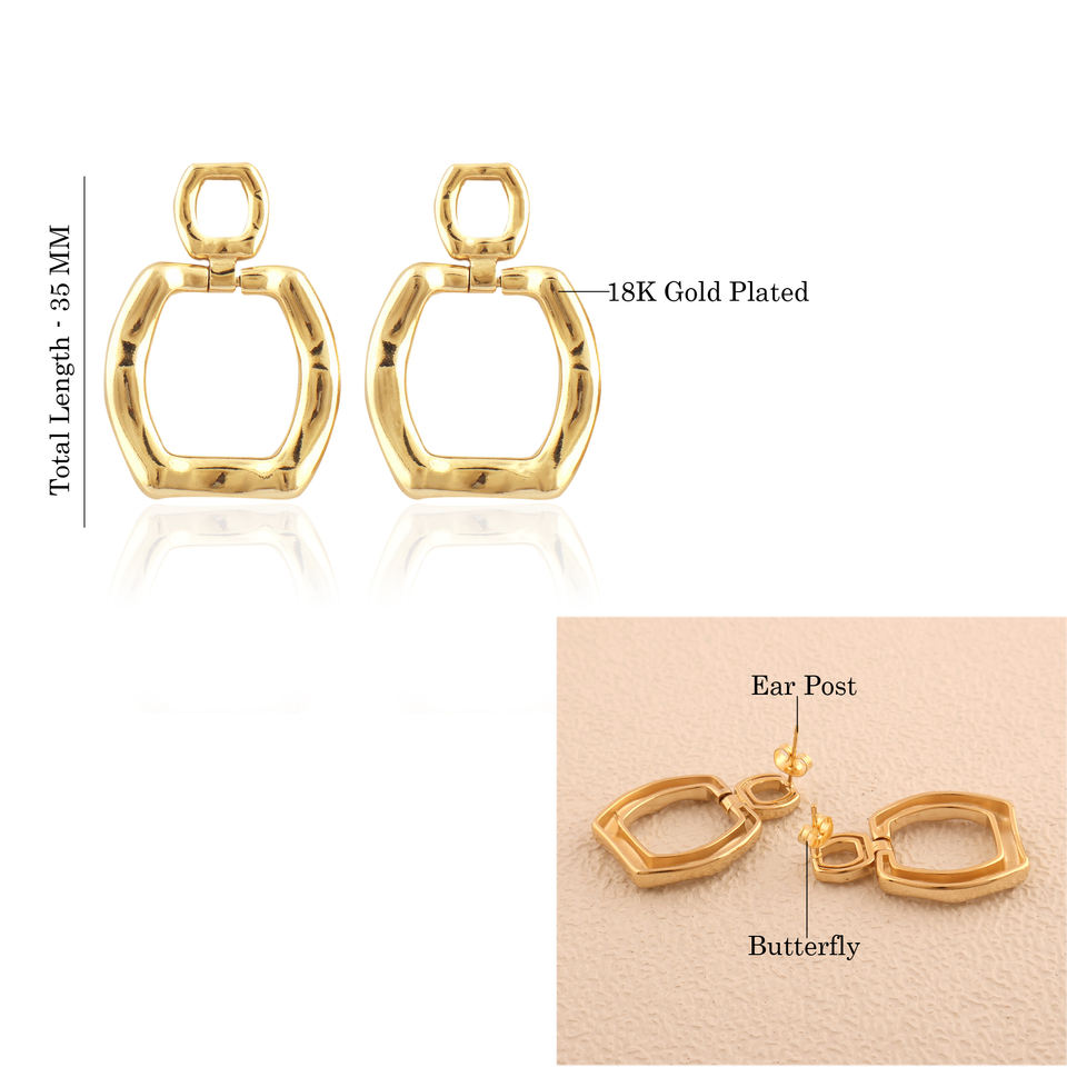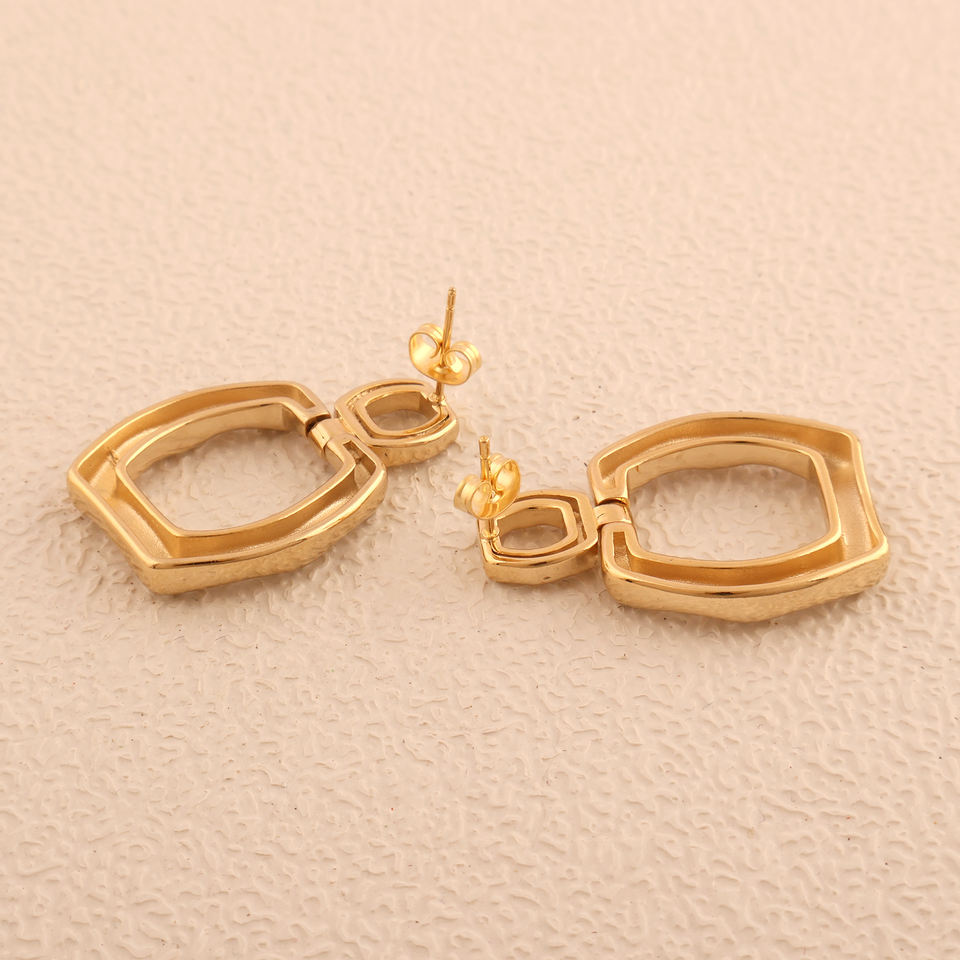 ต่างหูห้อยทรงเรขาคณิตทำจากทองเหลืองโทนสีทองล้วนทันสมัยทันสมัยชุบทอง18K สำหรับผู้หญิง