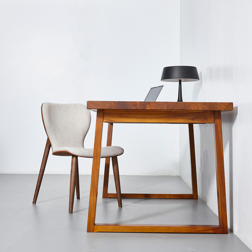 โต๊ะทำงานไม้สักทันสมัย สวยงาม อบอุ่น ทนทาน สะดวกสบาย พร้อมลิ้นชัก 1 ช่อง ขาทรงสี่เหลี่ยมคางหมู สำหรับสำนักงาน ผลิตในอินโดนีเซีย