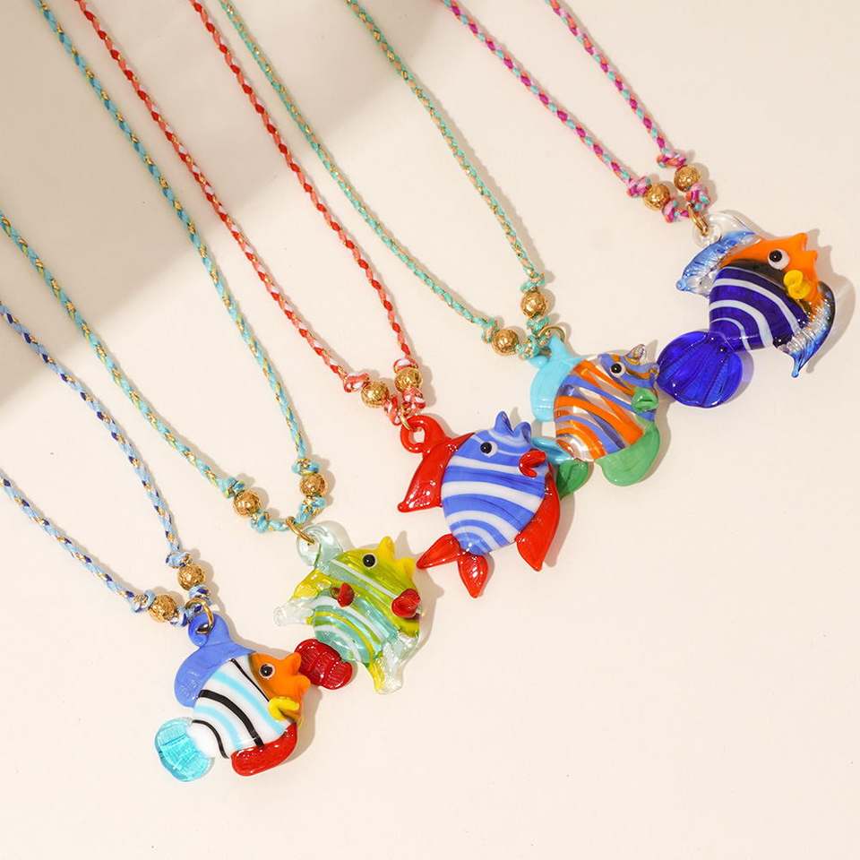 สร้อยคอจี้รูปปลาทำจากแก้วสีสันสดใสของขวัญสำหรับฤดูร้อนสร้อยคอปรับได้ตามธีมท้องทะเลเครื่องประดับชายหาดแปลกๆสำหรับผู้หญิง