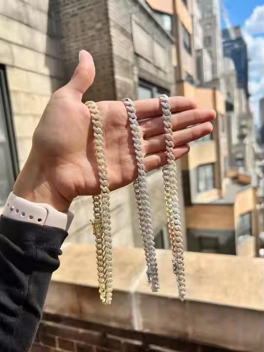 สร้อยคอสุดหรูสไตล์คิวบาทันสมัยเครื่องประดับเงินสีโรสโกลด์พร้อม VVS เครื่องทดสอบเพชรแบบฝังเพชร