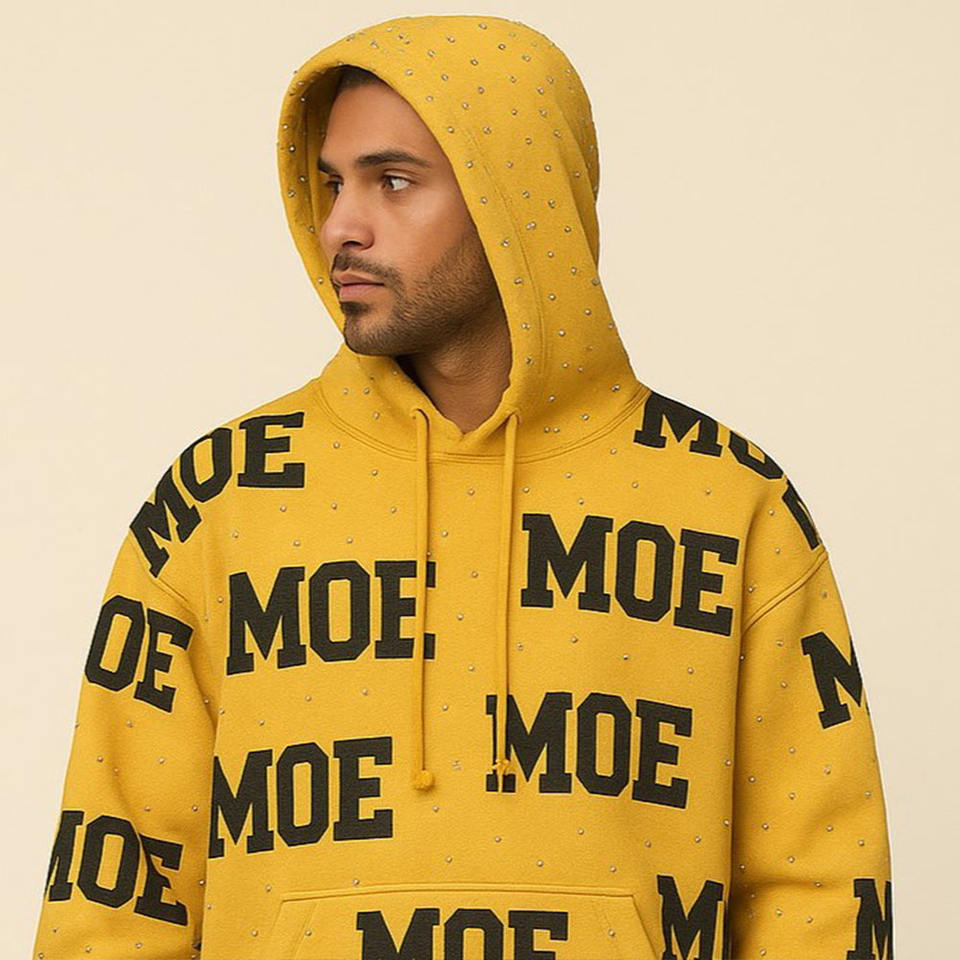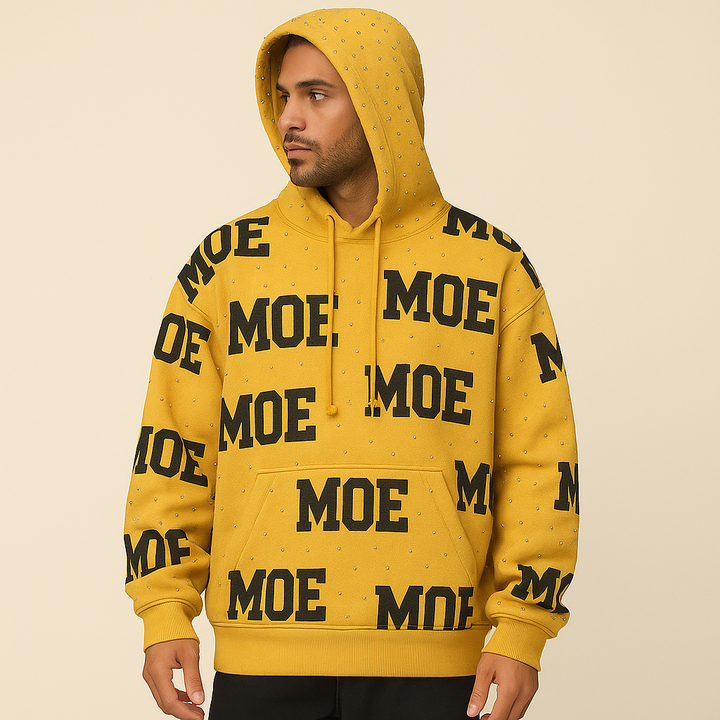 Trendy Custom All Over Print Hoodies Men Yellow Fleece Warm Oversized Streetwear Pullover Custom Text Design OEM Supplier USA