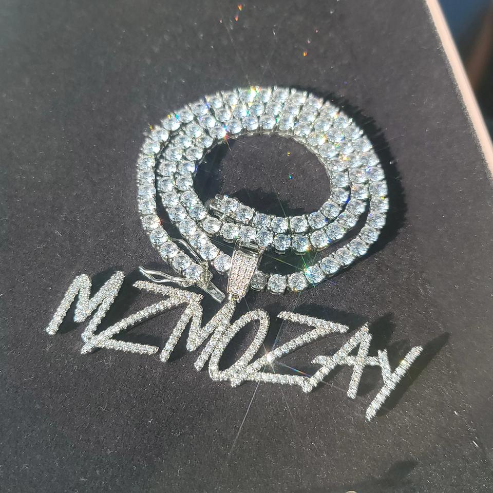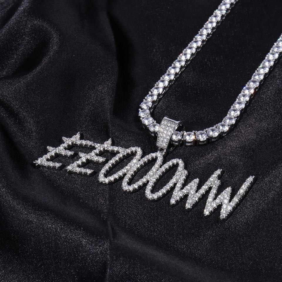 สร้อยคอจี้เพชรตัวอักษรแบบมินิสั่งทำสุดเทรนดี้สำหรับเด็กชายและเด็กหญิง พร้อมสลักชื่อส่วนตัว วัสดุเงินแท้/ทองคำขาว พร้อมสายสร้อยแบบ Iced