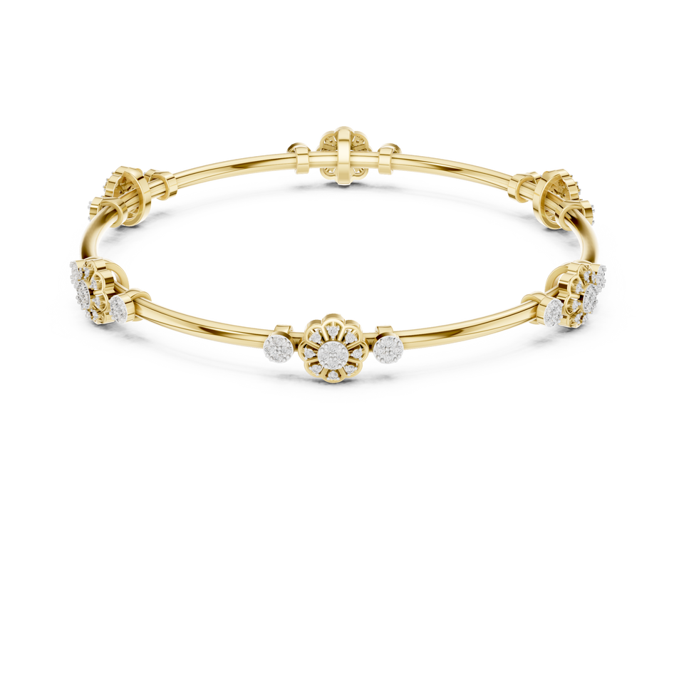 กำไลข้อมือทองคำ 18K สีเหลือง ประดับเพชรทรงกลมเจียระไนแบบบริลเลียนท์ เพชรเลี้ยงคุณภาพส่งออก ปรับแต่งได้ตามต้องการ จำหน่ายจำนวนมาก