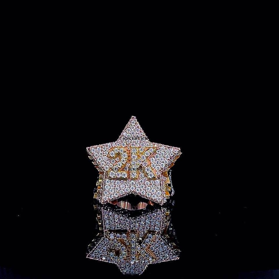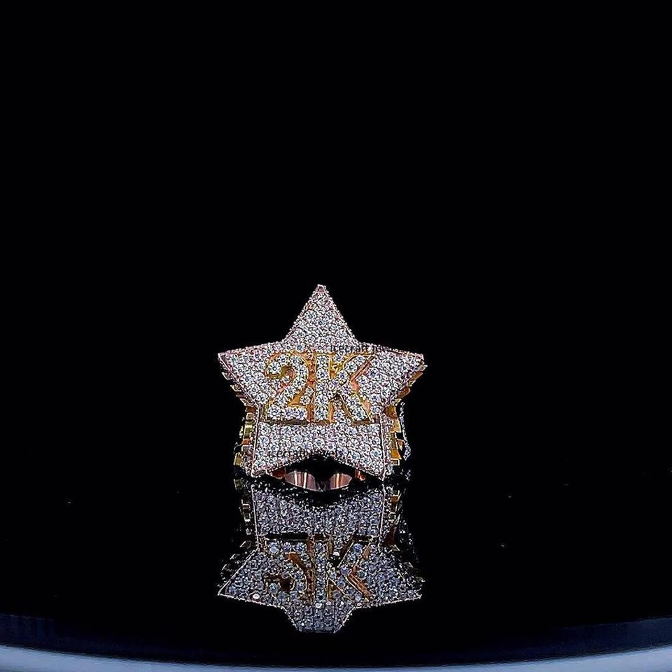 แหวนฮิปฮอปผู้ชายดีไซน์ดาวเงินแท้ 925 ประดับเพชรแบบไอซ์ พร้อมใบรับรอง IGI สุดเทรนดี้และสามารถปรับแต่งได้