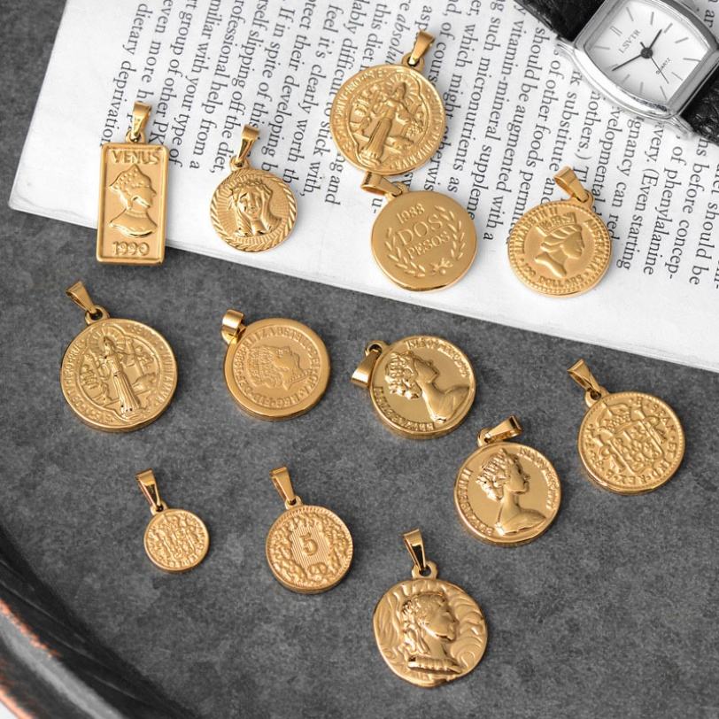 Trendy DIY 316l 18k Stainless Steel Luxury Customize Roman Portrait Coin Charm Pendant Accessories for Jewelry Making Wholesale