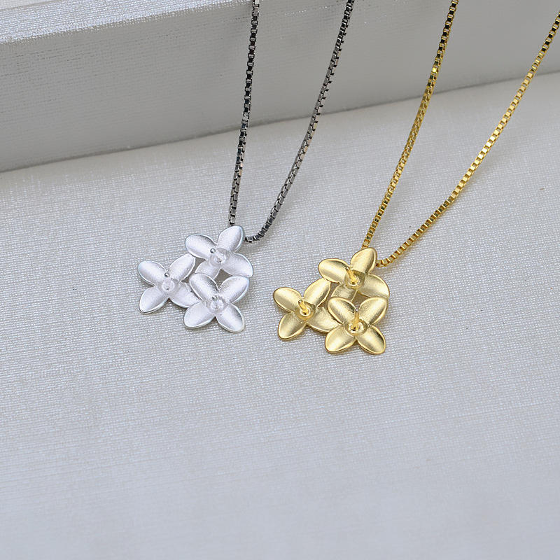 อุปกรณ์ทำเครื่องประดับ DIY สุดฮิต เงินแท้ S925 จี้เงินเรียบ 3 ดอกไม้เล็ก ฐานเปล่าสำหรับใส่ไข่มุก 4-5 เม็ด สำหรับทำเครื่องประดับ