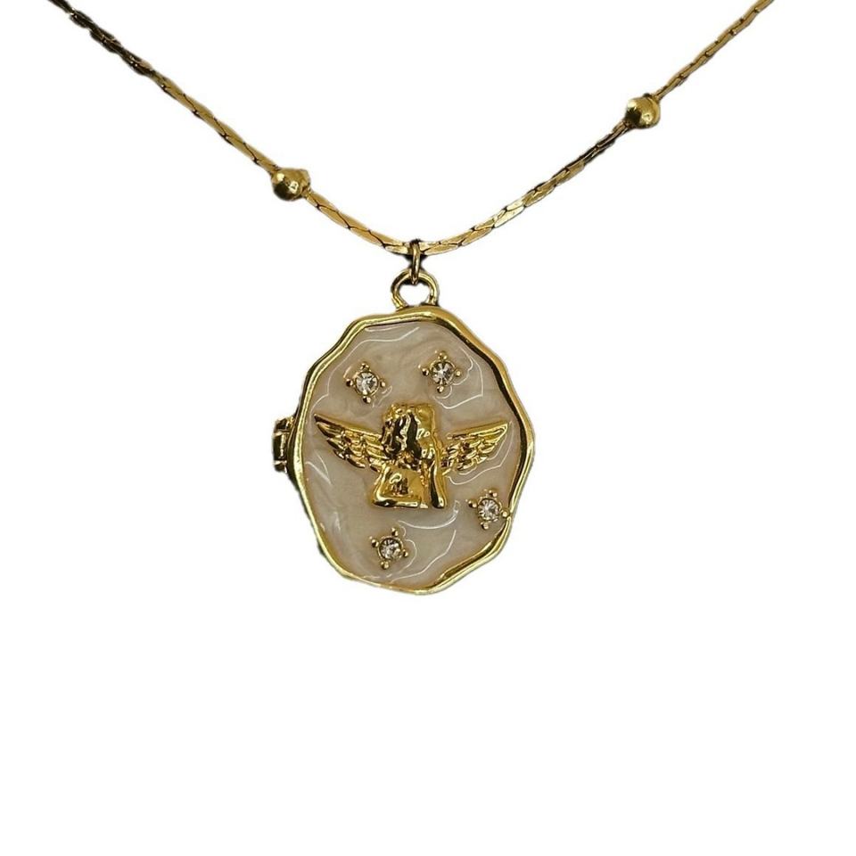สร้อยคออัลบั้มรูป DIY สุดฮิต พร้อมกล่องใส่รูปทรงลูกศรคิวปิดทองเหลือง ประดับเพชรซิร์คอน ใส่รูปสัตว์เลี้ยงได้