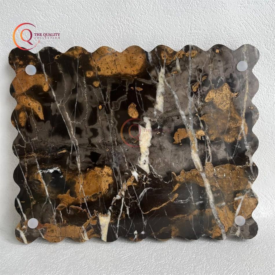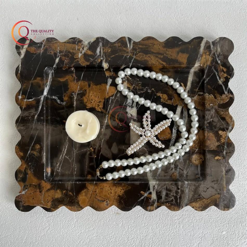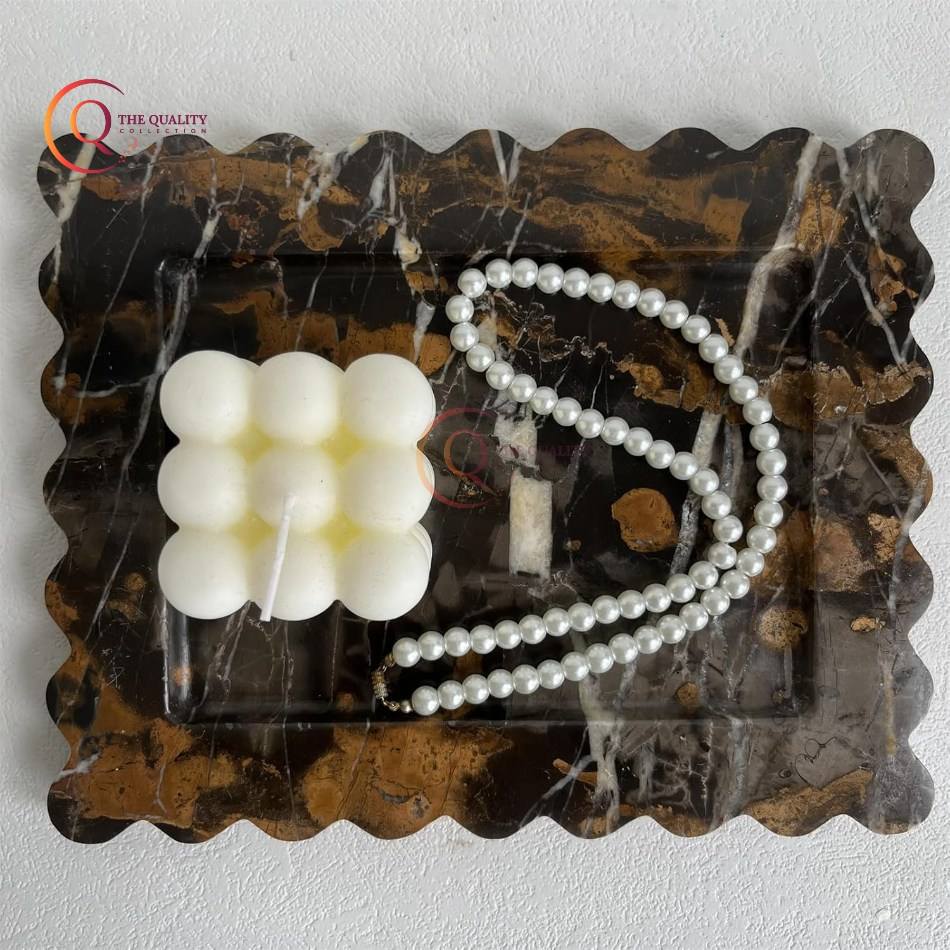 ถาดเสิร์ฟอาหารลายหินอ่อนสีน้ำตาลมันวาวถาดเสิร์ฟอาหารจานเคลือบเงาสำหรับบ้านและโรงแรมดีไซน์ทันสมัย