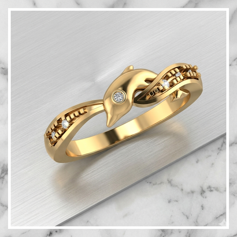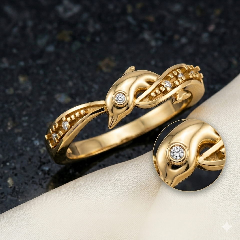 แหวนทองคำแท้ 10K ดีไซน์ทันสมัย ประดับเพชรโมอิสซาไนต์รูปปลาโลมาสุดน่ารัก สำหรับคนรักทะเล เหมาะสำหรับงานฉลองครบรอบ