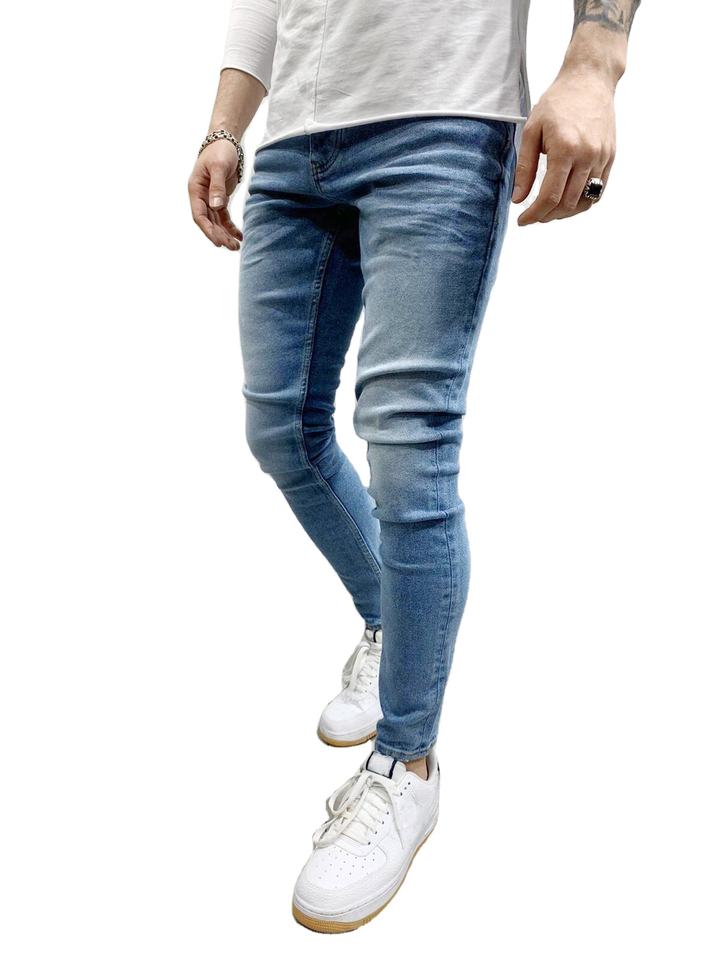 กางเกงยีนส์สำหรับผู้ชายทรงผอมระบายอากาศได้ดีปรับแต่งได้ดีไซน์ทันสมัย