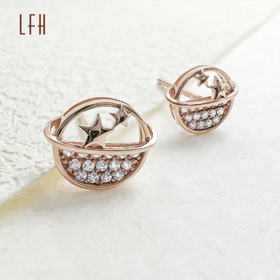 ต่างหูเม็ดเพชรรูปดาวที่ละเอียดอ่อนแบบเรียบง่ายดีไซน์ทันสมัยเครื่องประดับทองเคแท้18K สีเหลือง