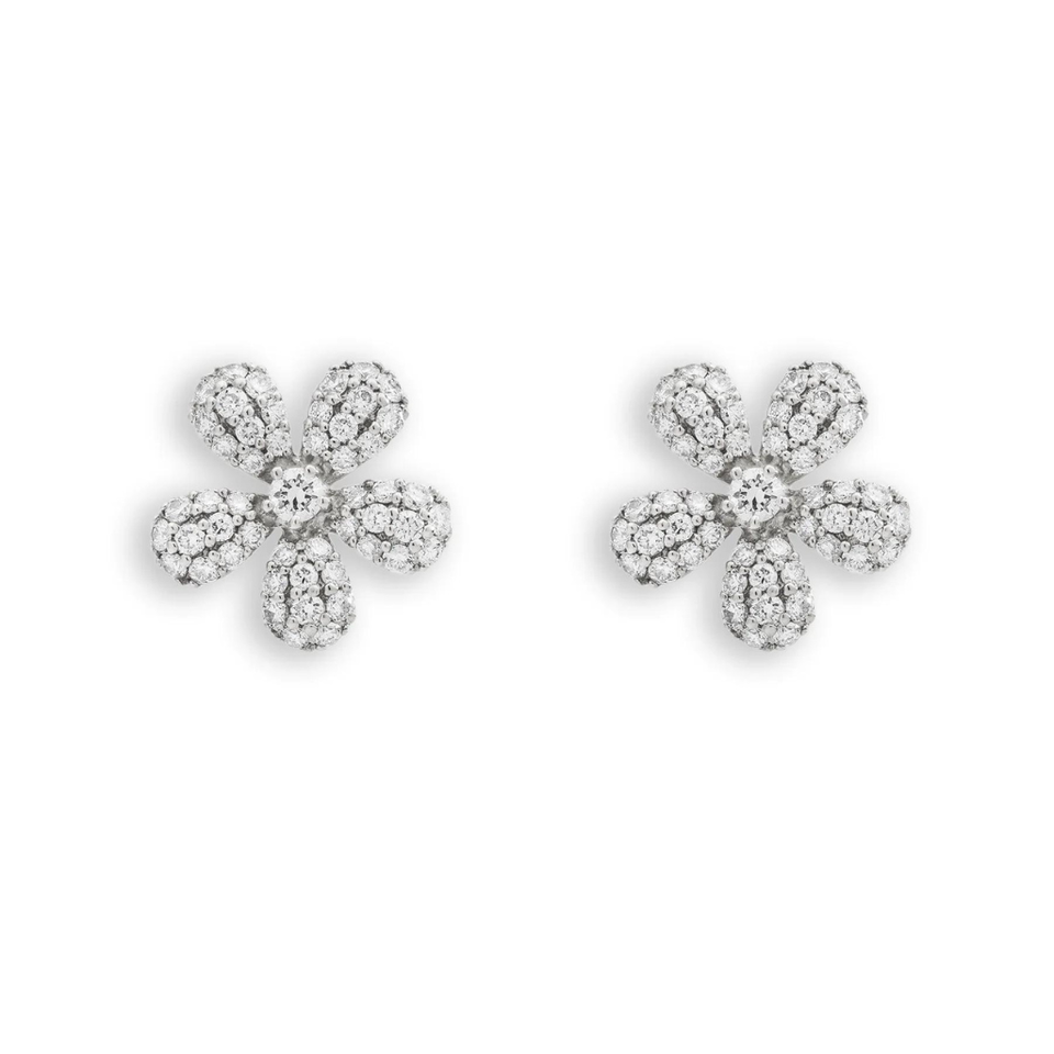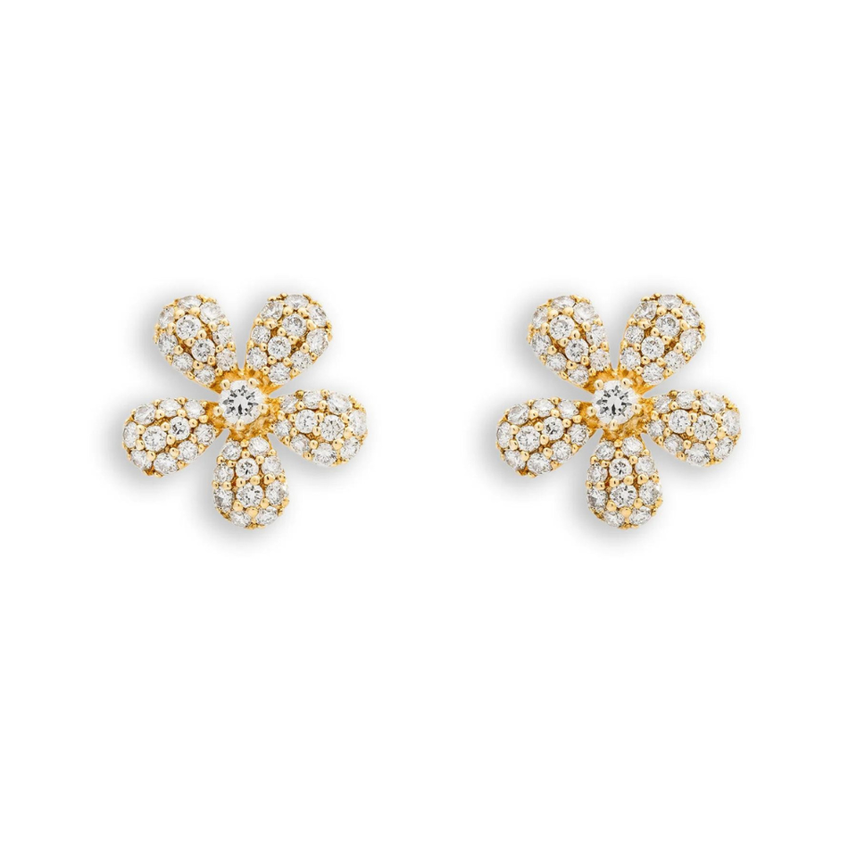 ต่างหูทองคำ14K ธรรมชาติต่างหูเม็ดเดี่ยวรูปดอกไม้สวยงามต่างหูเพชรธรรมชาติดีไซน์ทันสมัย