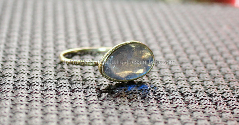 แหวนอัญมณีทำมือทำด้วยมือทำจากเงินแท้แร่แลบราโดไรต์เคลือบทองดีไซน์ทันสมัยขายส่ง925