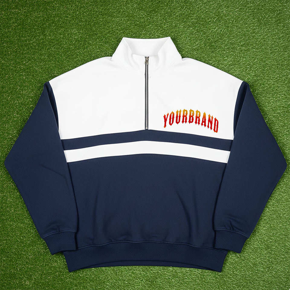 Trendy Design Oversized Fleece Men's Half Zipper Sweatshirts Color Block Embroidered Custom Logo Eco-Friendly Mock Neck