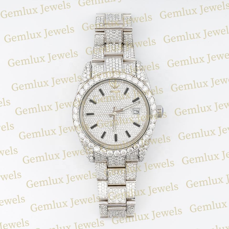 นาฬิกาอัติโนมัติสำหรับผู้ชายเครื่องทดสอบผ่านเพชร D VVS เพชรเพชร Moissanite เคลื่อนไหวอัตโนมัติเต็มรูปแบบนาฬิกาฮิปฮอปสำหรับผู้ชายดีไซน์ทันสมัย