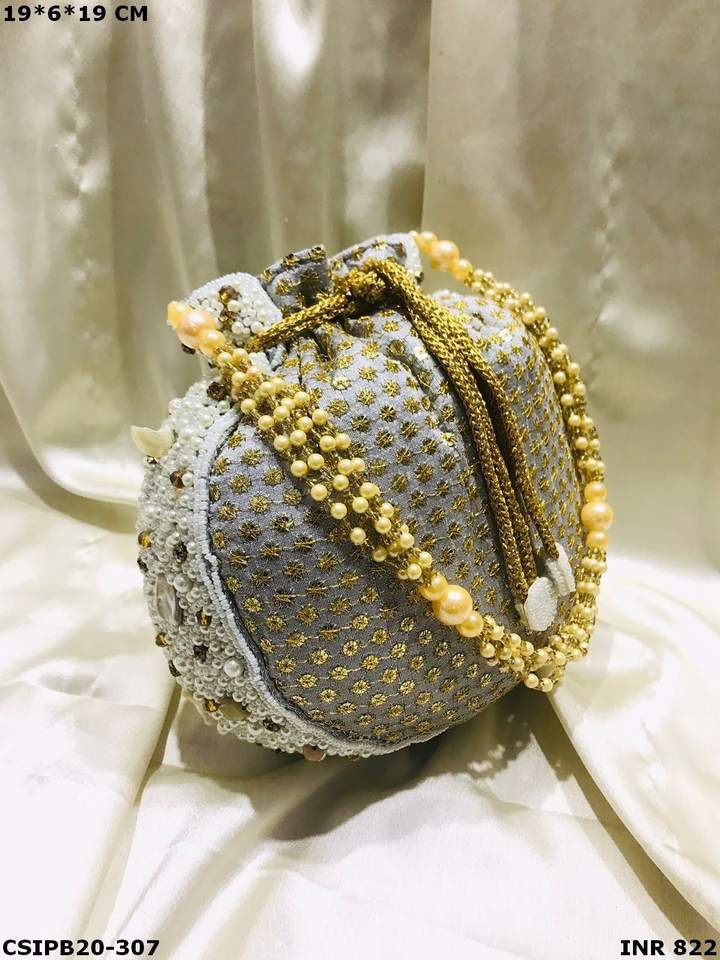 กระเป๋า Potli Batua ดีไซน์ทันสมัย งานฝีมือจาก Craftstages International สำหรับสุภาพสตรี สไตล์หรูหรา ตกแต่งลายหิน ขนาด 19*6*19 ซม.