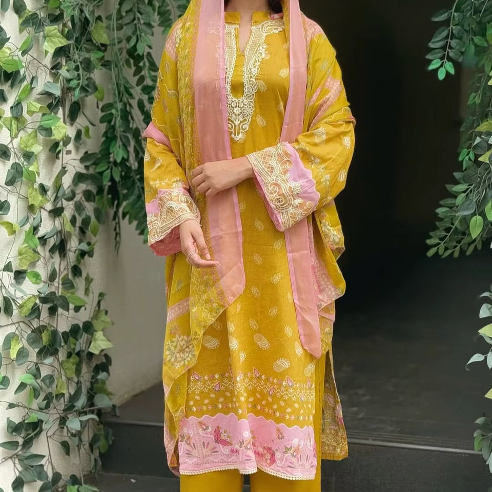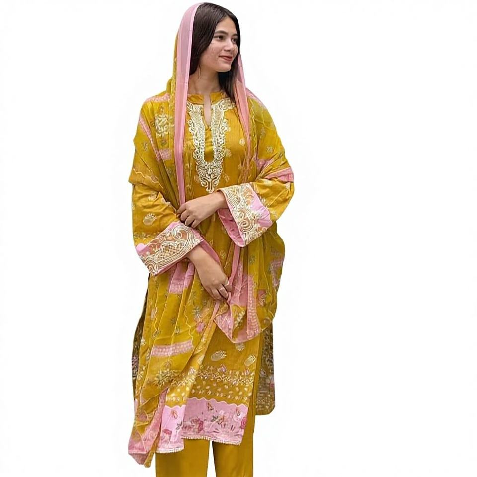 ชุดทำงานผ้ามัสลินพิมพ์ลายดิจิทัลสไตล์อินเดียปากีสถาน ดีไซน์ทันสมัย สำหรับผู้หญิง งานพิเศษ งานปาร์ตี้ งานแต่งงาน ชุดพื้นเมือง
