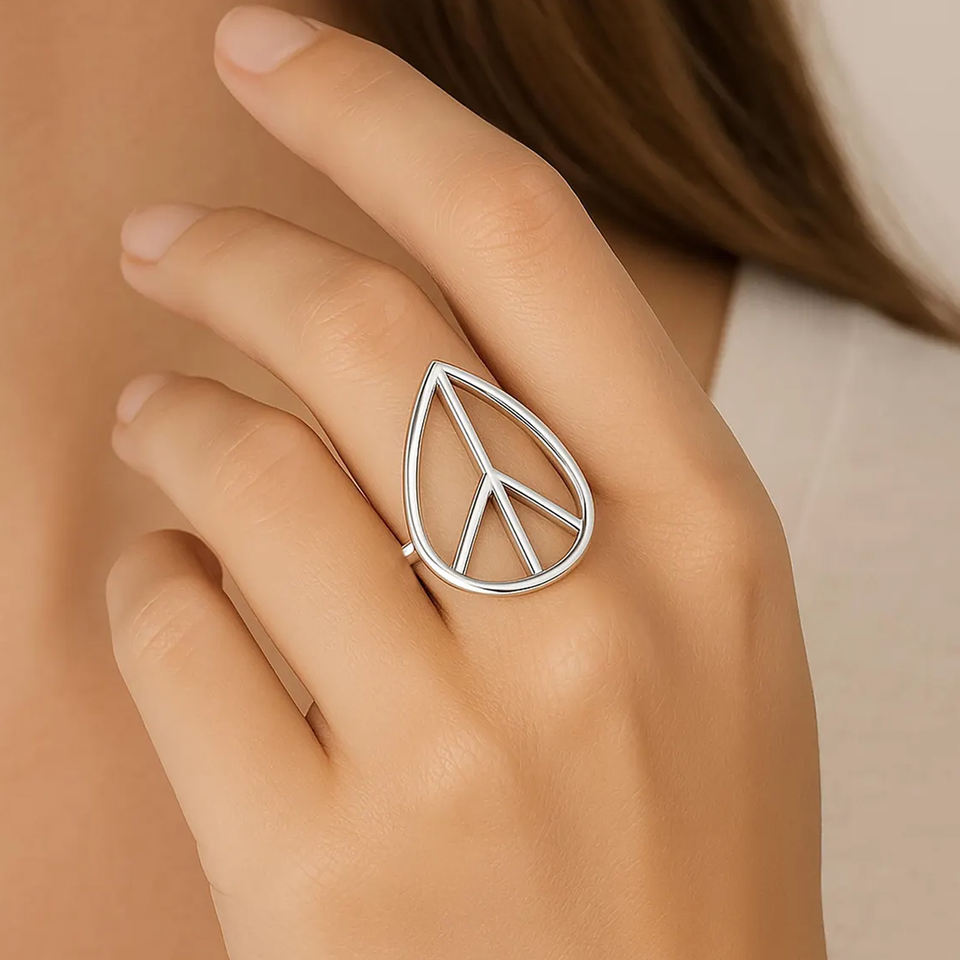 Teardrop Peace Sign Ring