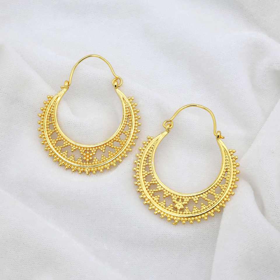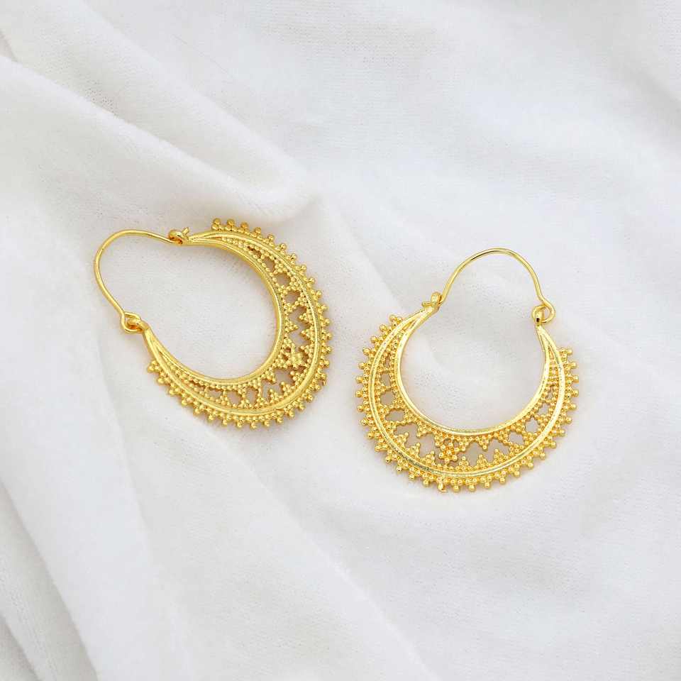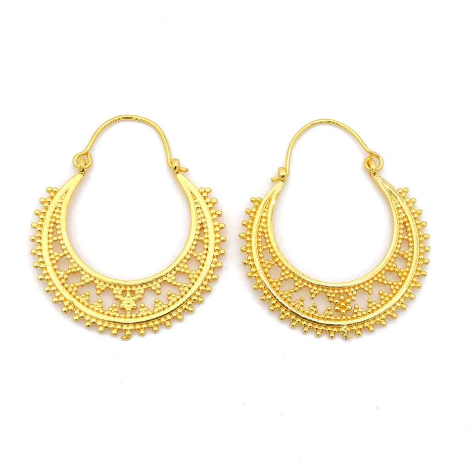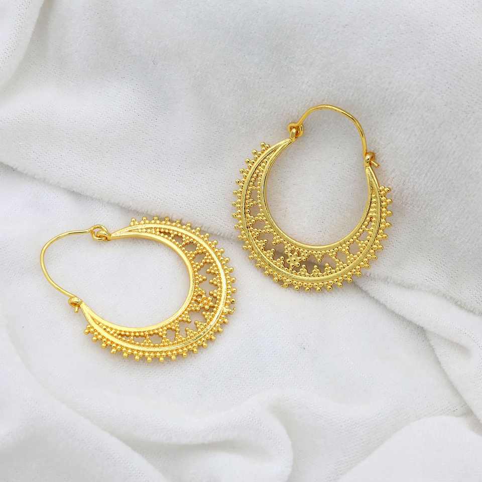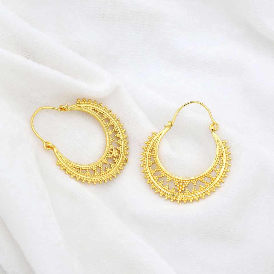 ต่างหูห่วงสไตล์ชนเผ่า โบฮีเมียน ทำจากทองเหลือง ดีไซน์เรียบง่าย สไตล์โบราณ ทำมือ เหมาะสำหรับผู้หญิง