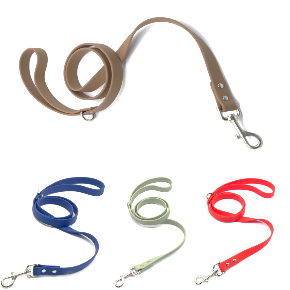 สายจูงสุนัขตะขอหมุนได้ห่วงพิเศษสายจูงสุนัขทำจากซิลิโคนพีวีซีบุนวมริบบิ้นกันน้ำแฟชั่นคลาสสิก
