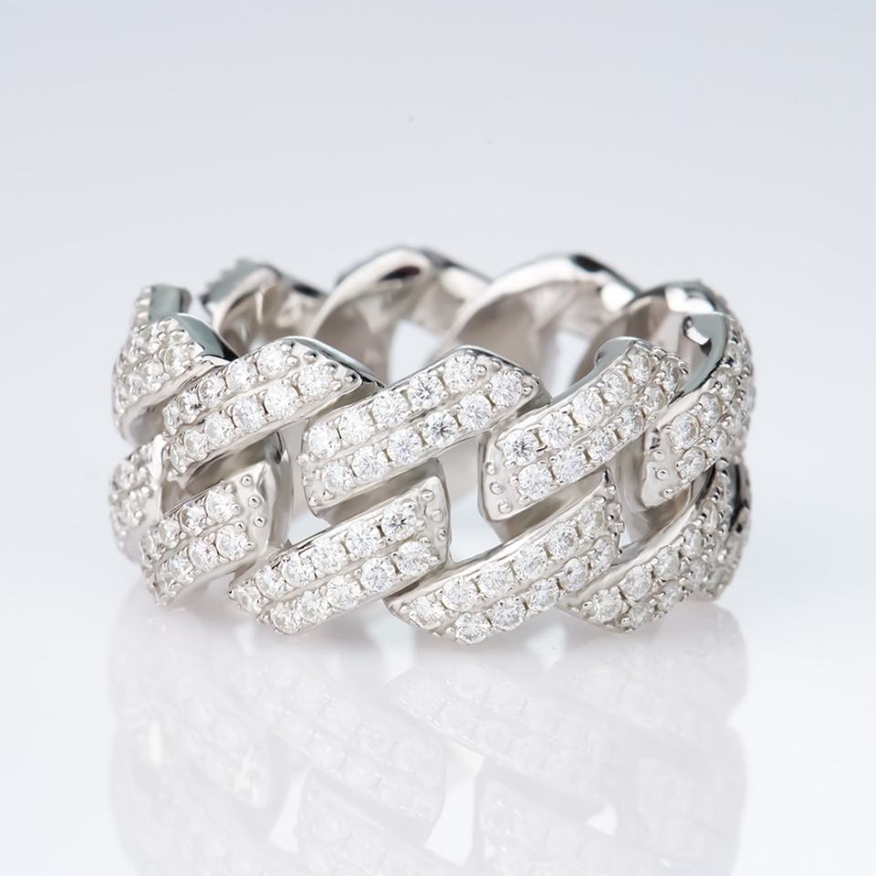 แหวนเงินแท้ 925 ชุบทองคำขาว ประดับเพชรโมอิสซาไนต์ สไตล์คิวบา แฟชั่นทันสมัย คุณภาพสูง มีจำหน่าย