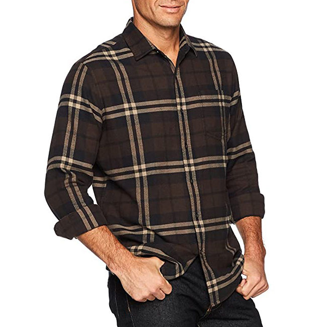 เสื้อเชิ้ตแฟลนเนลลายสก็อตผู้ชายแฟชั่นทันสมัย มีกระเป๋าหน้า 2 ช่อง ผ้าฝ้าย 100% แขนยาว ทรงปกติ ติดกระดุม เสื้อลำลองสำหรับผู้ชาย