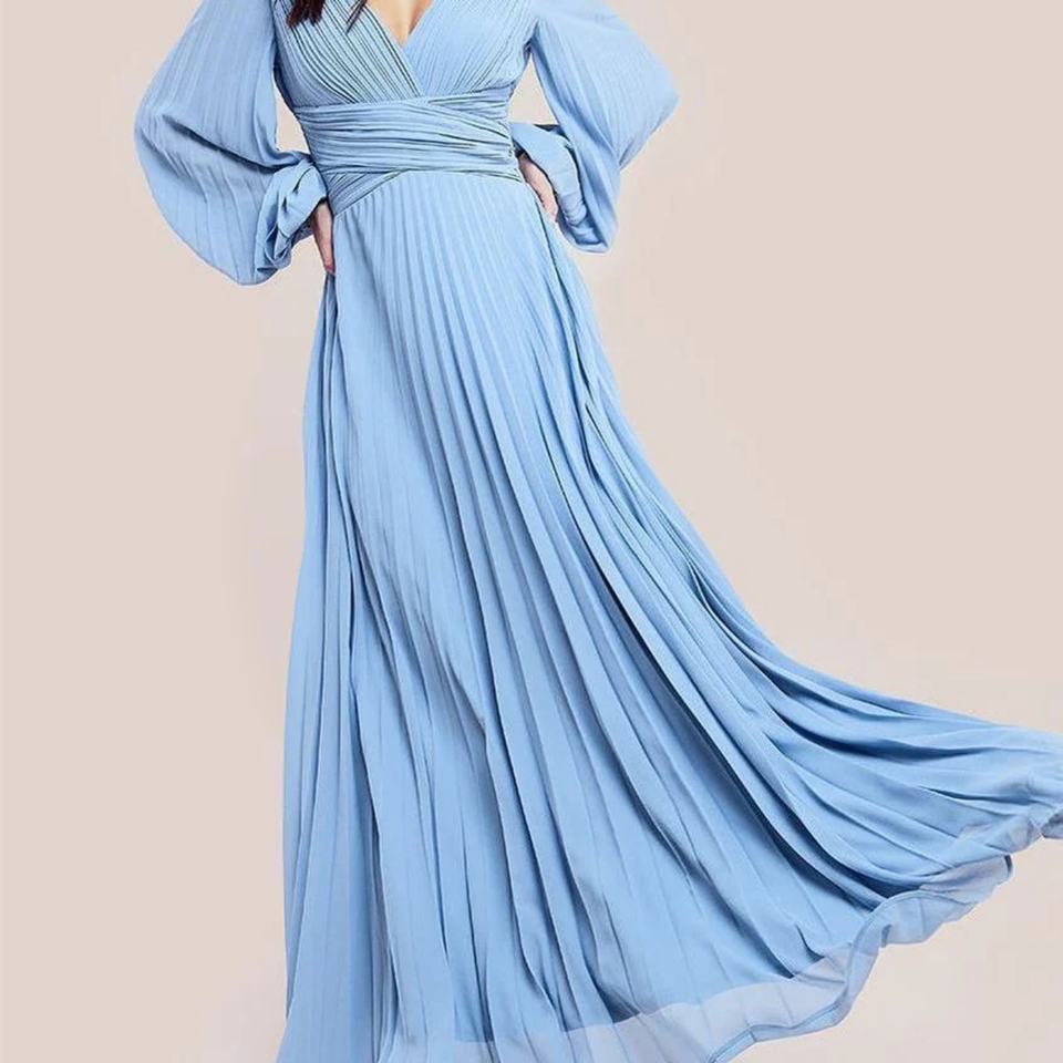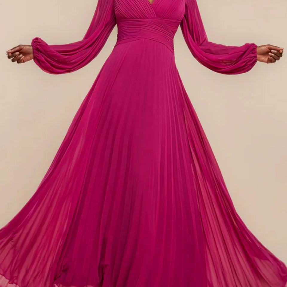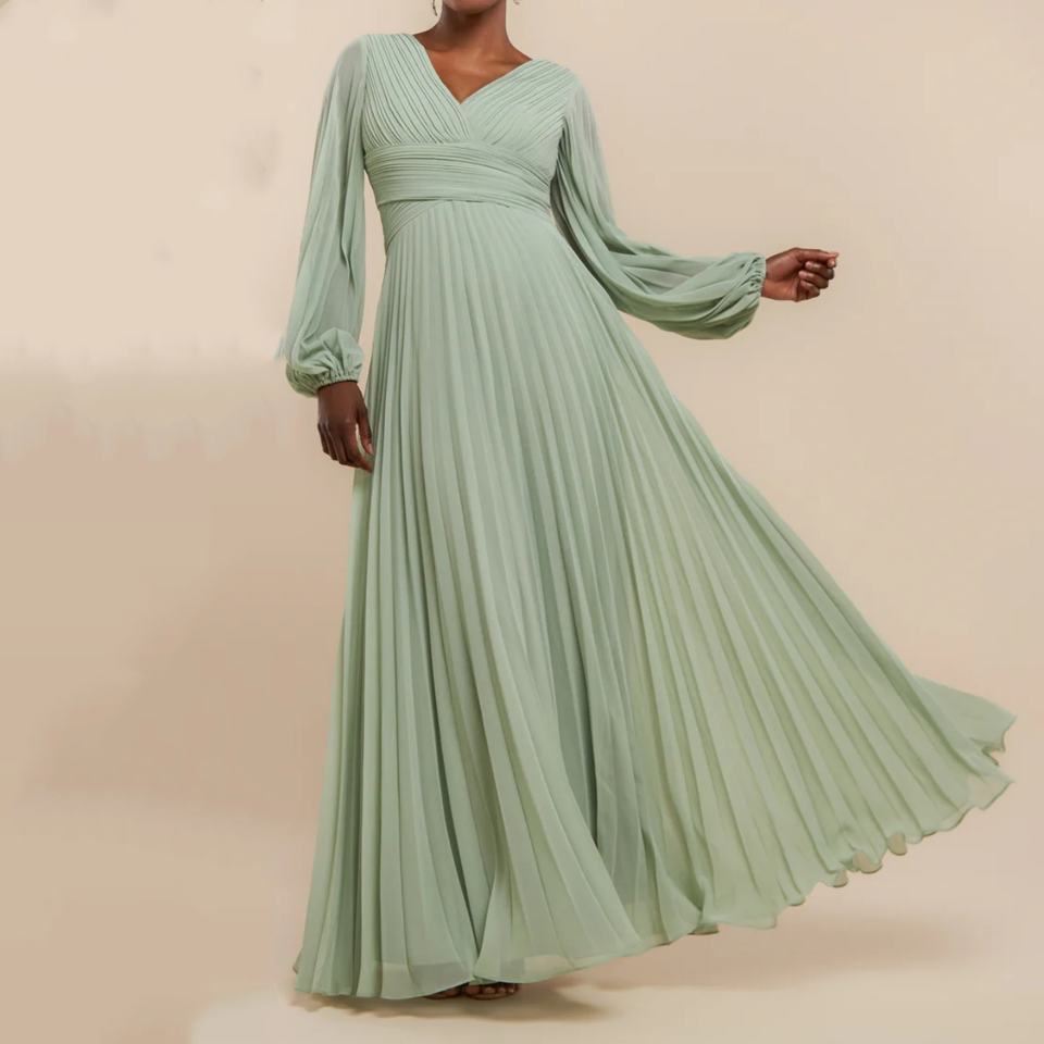 ชุดเดรสยาวทรงพลีท คอวี เซ็กซี่ แฟชั่นทันสมัยสำหรับผู้หญิง ฤดูใบไม้ผลิ แขนยาว ทรงหลวม สไตล์ทางการ เรียบหรู ดูดี เหมาะสำหรับงานกลางคืน