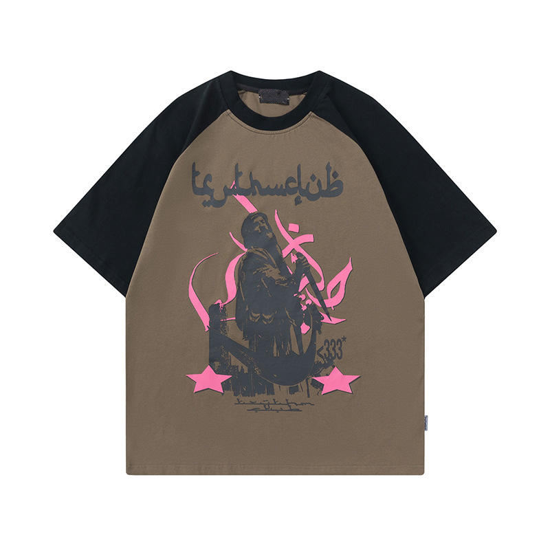 เสื้อยืดแฟชั่นผู้ชายทรงโอเวอร์ไซส์ คอตั้ง ผ้าทวิล พิมพ์ลาย DTF คุณภาพสูง