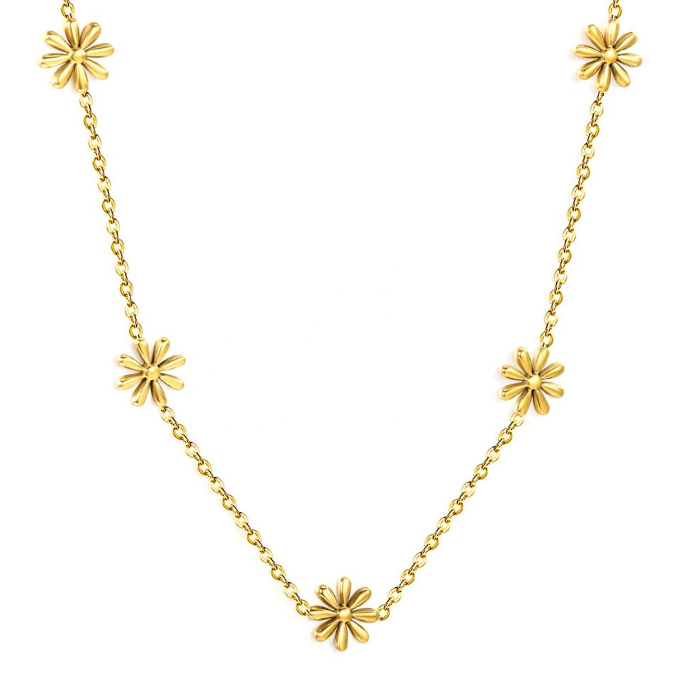สร้อยคอแฟชั่นทันสมัย ไม่ลอก ไม่ดำ ชุบทอง 18k ลายดอกไม้ สร้อยคอเดซี่สแตนเลสชุบทอง 18K PVD สำหรับผู้หญิง
