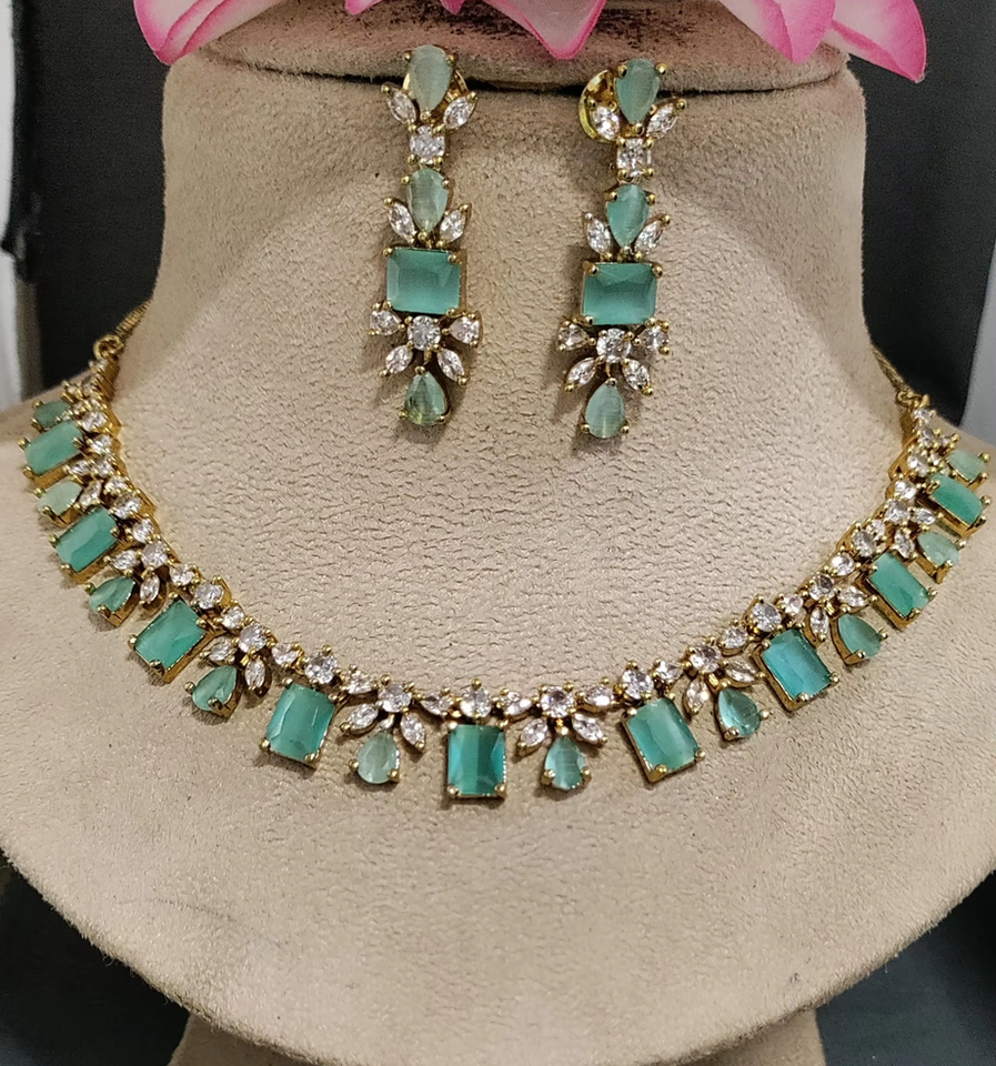 ชุดสร้อยคอและต่างหูประดับเพชร CZ สไตล์เมเฮนดีสุดหรูสำหรับงานแต่งงานและวันครบรอบ - สำหรับผู้หญิง รุ่น 183