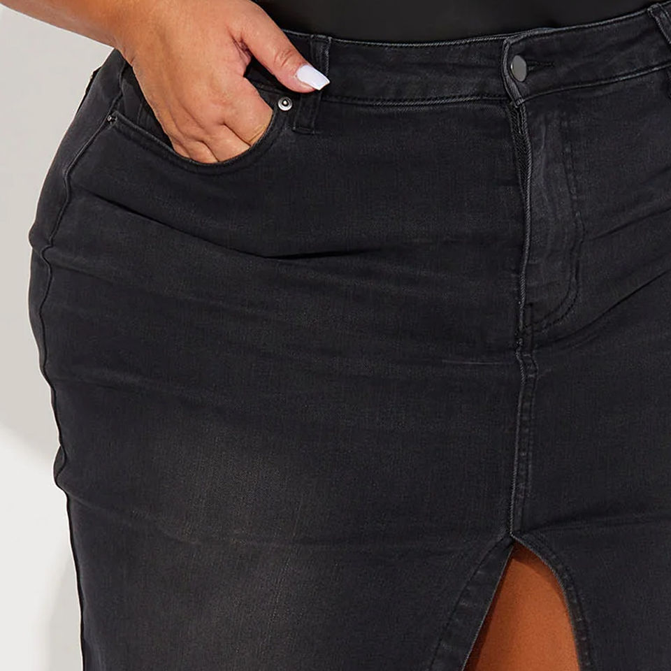 กระโปรงผ้ายีนส์ Maxi สำหรับผู้หญิงกระโปรงผ้ายีนส์สีอ่อนและดำทันสมัย