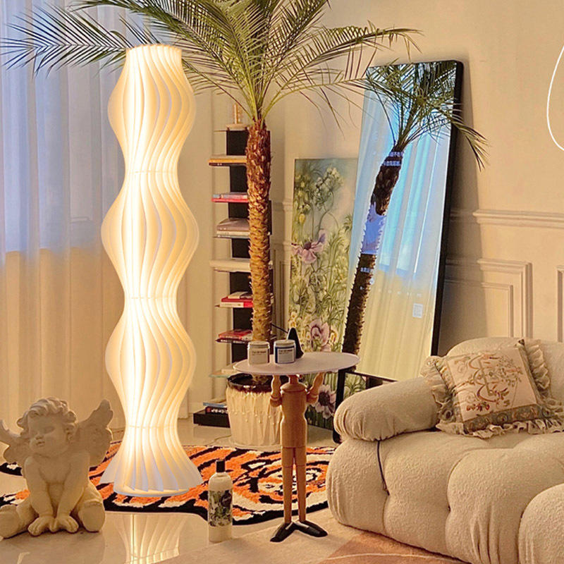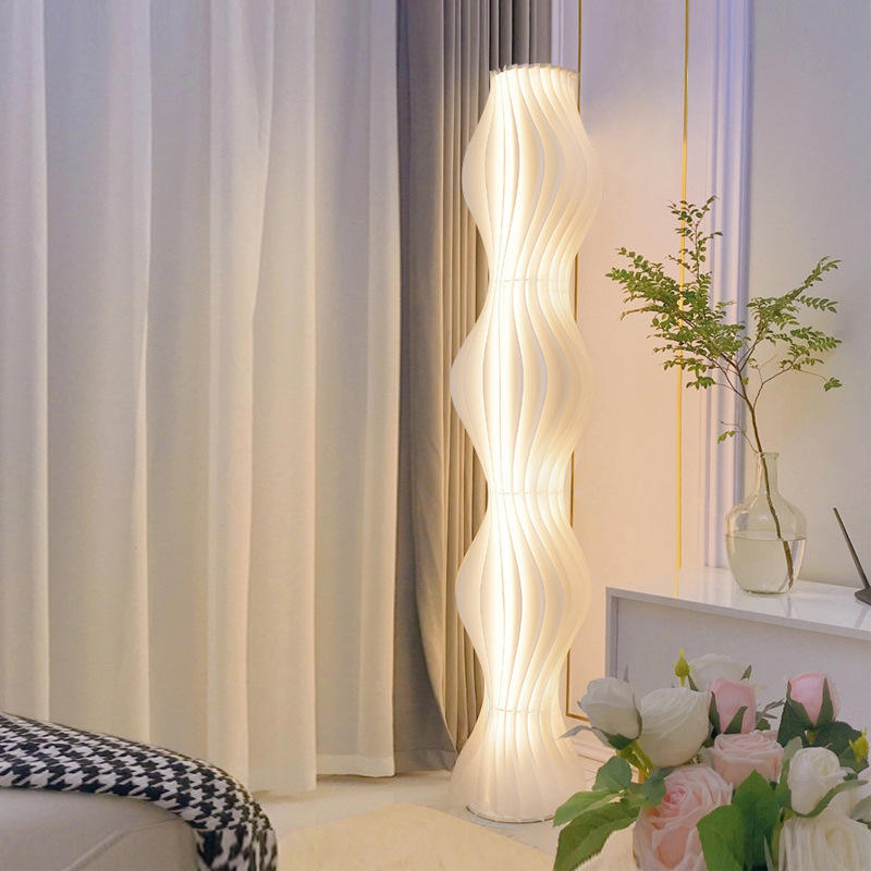 โคมไฟตั้งพื้นอินเทรนด์พลาสติกสีขาวนวลแหล่งกำเนิดแสง LED ห้องนั่งเล่นห้องนอนแสงสว่างโดยรอบตกแต่งโซฟาสไตล์สร้างสรรค์