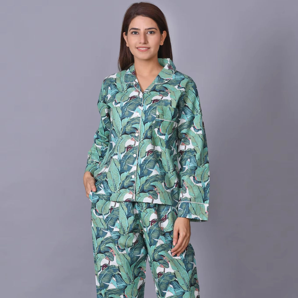 ชุดนอนผ้าฝ้ายทรงเข้ารูประบายอากาศดีลายดอกไม้ทันสมัย ชุดยาวเต็มตัว เหมาะสำหรับฤดูร้อนแบบอินเดีย ชุดสำหรับเจ้าสาวและเจ้าบ่าว