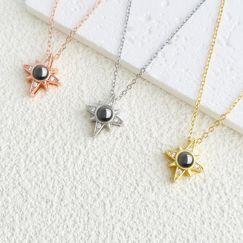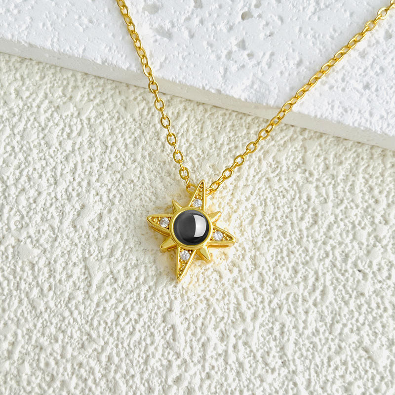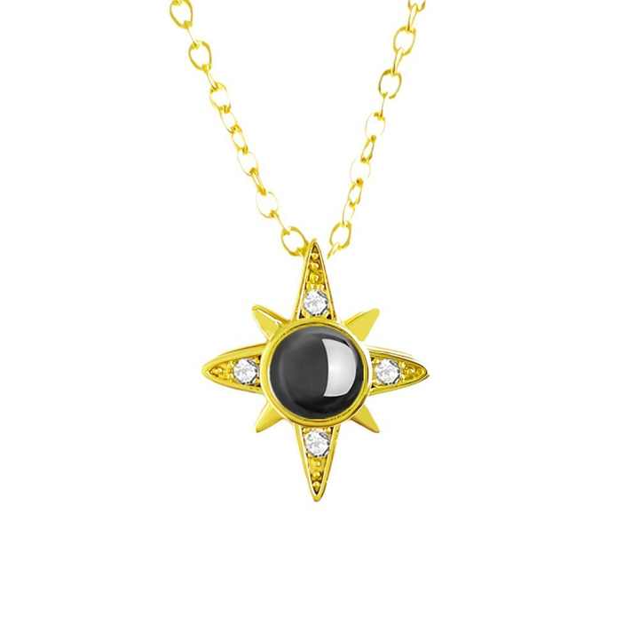 สร้อยคอยาวแปดแฉกสีทองทันสมัยโซ่กระดูกไหปลาร้าอเนกประสงค์100ภาษาเครื่องฉายภาพส่วนใหญ่ทำจากทองเหลือง