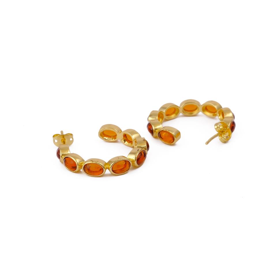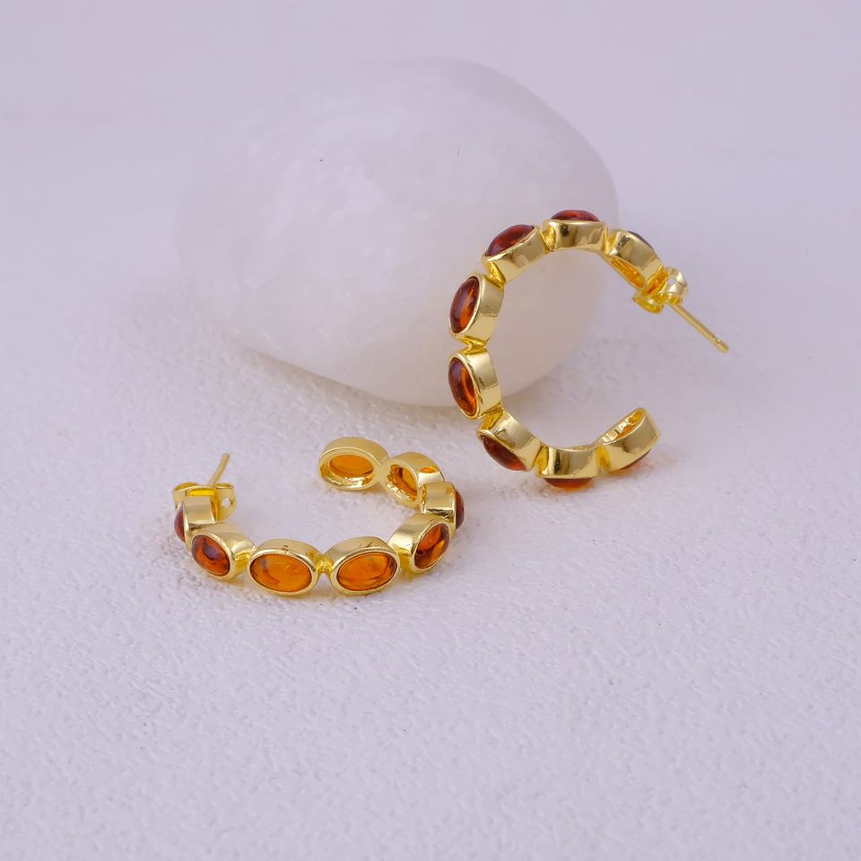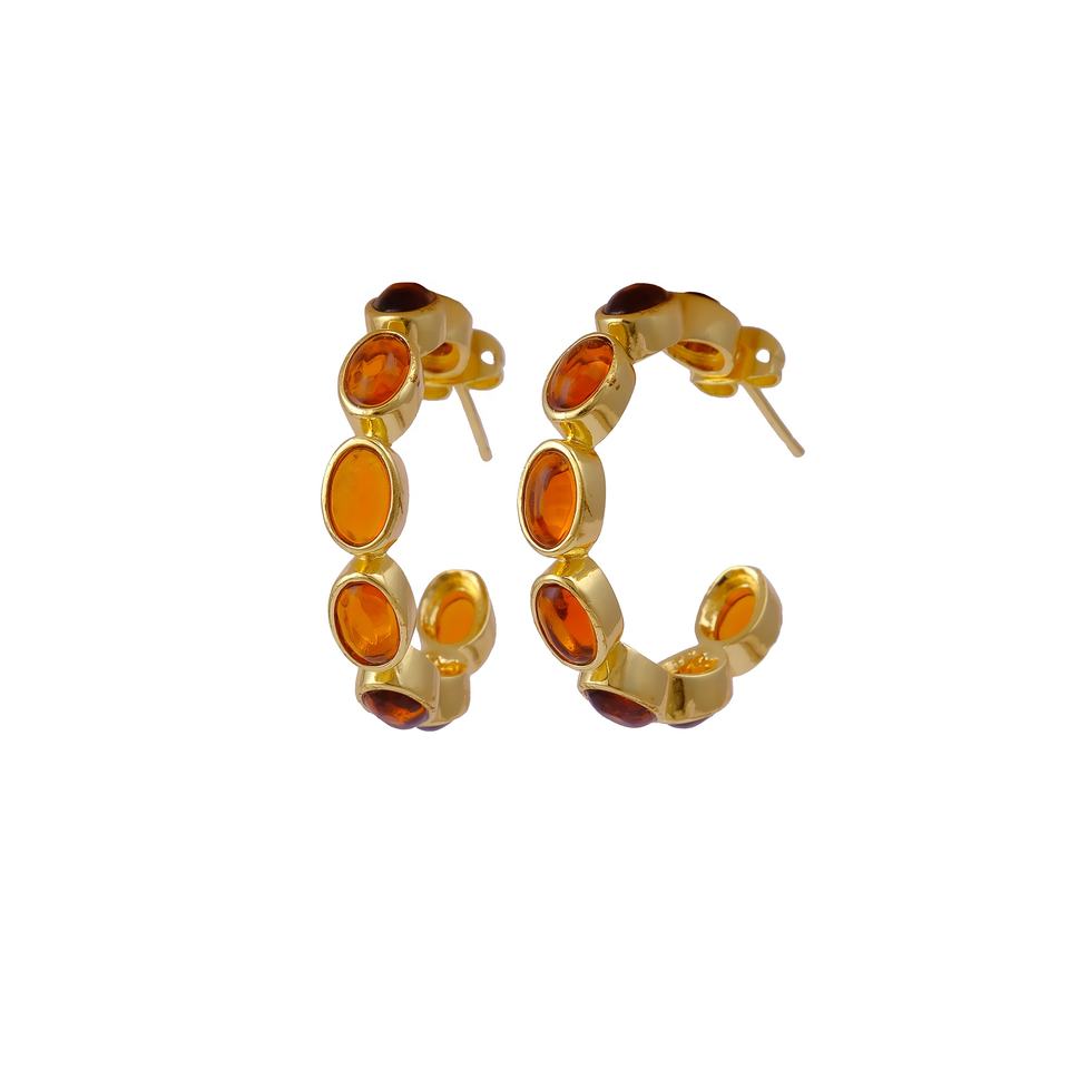 ต่างหูห่วงทองเหลืองชุบทองที่ทันสมัยทำด้วยมือควอตซ์อัญมณี November เครื่องประดับแฟชั่น