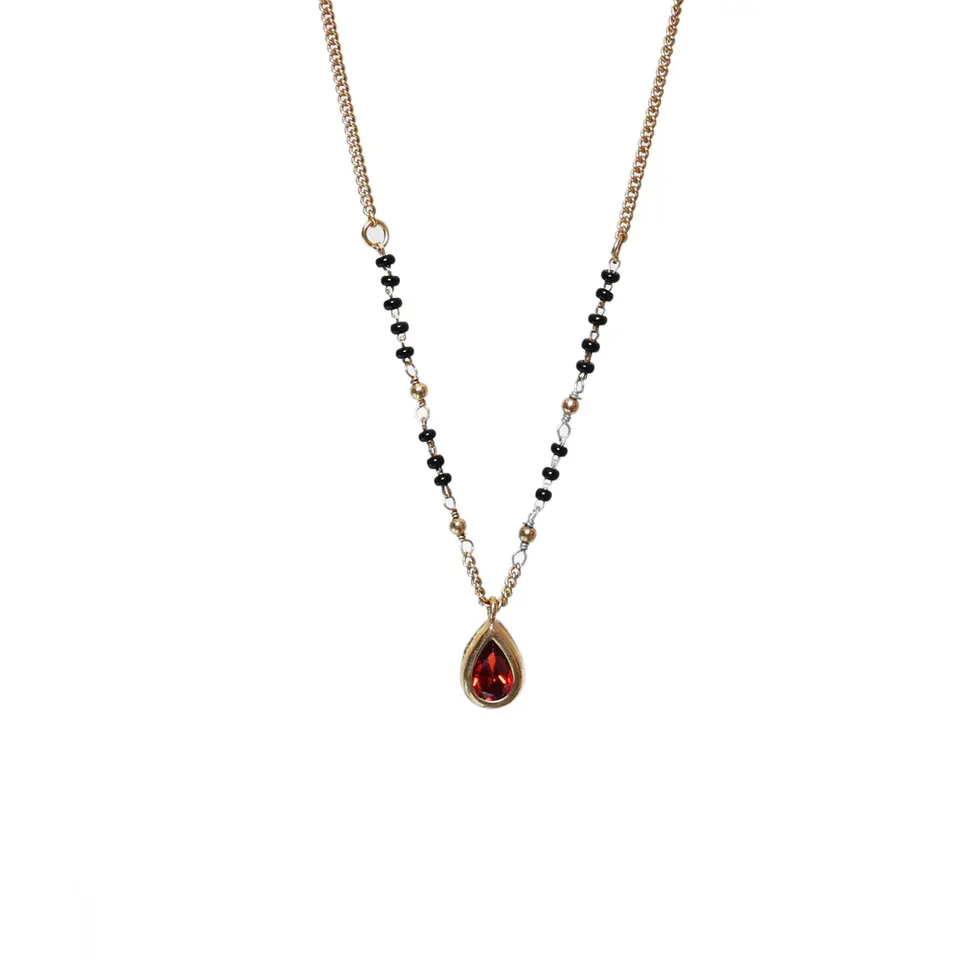 สร้อยคอจี้รูปหยดน้ำประดับพลอยโกเมนชุบทองทันสมัย พร้อมสายเชื่อมแบบลิงค์ สำหรับผู้หญิง เหมาะเป็นของขวัญในงานทางศาสนา ประดับด้วยไข่มุกเป็นหินหลัก
