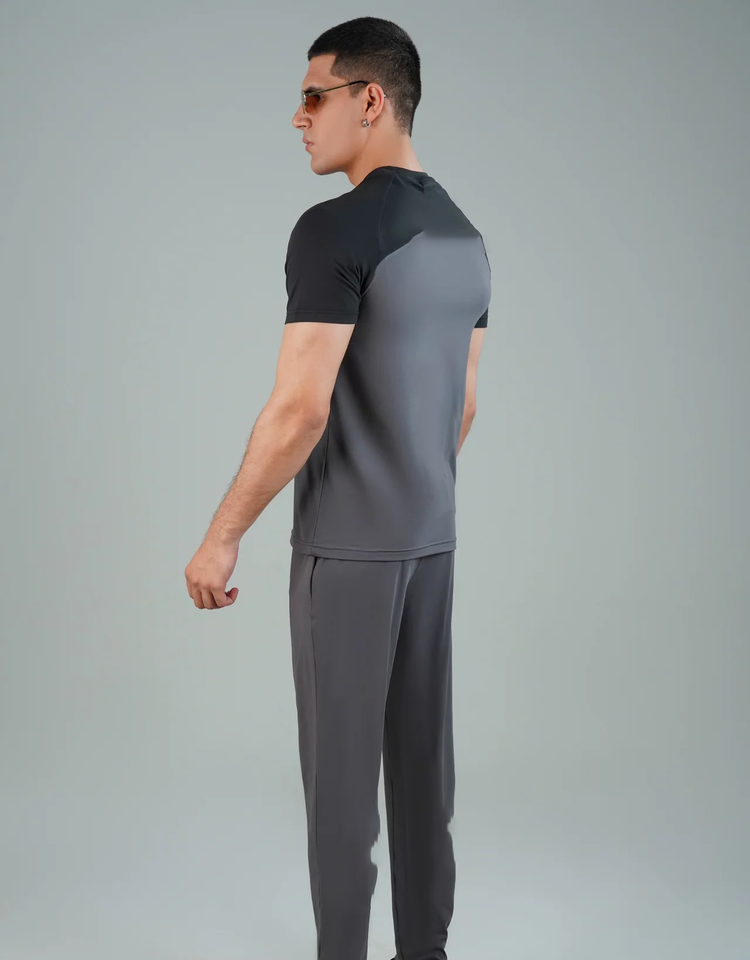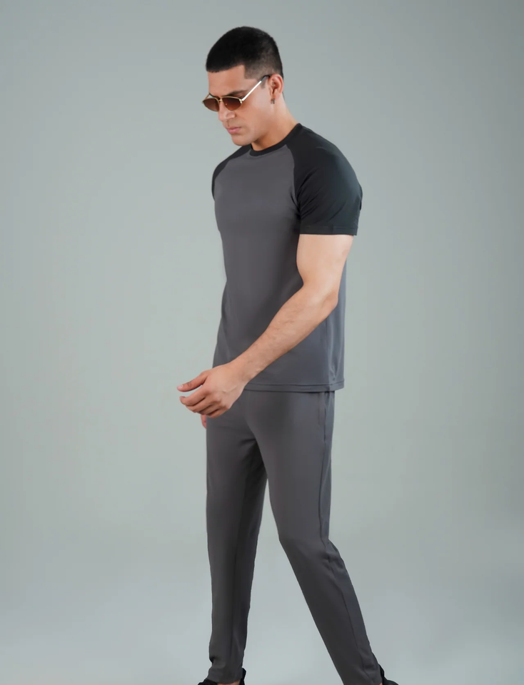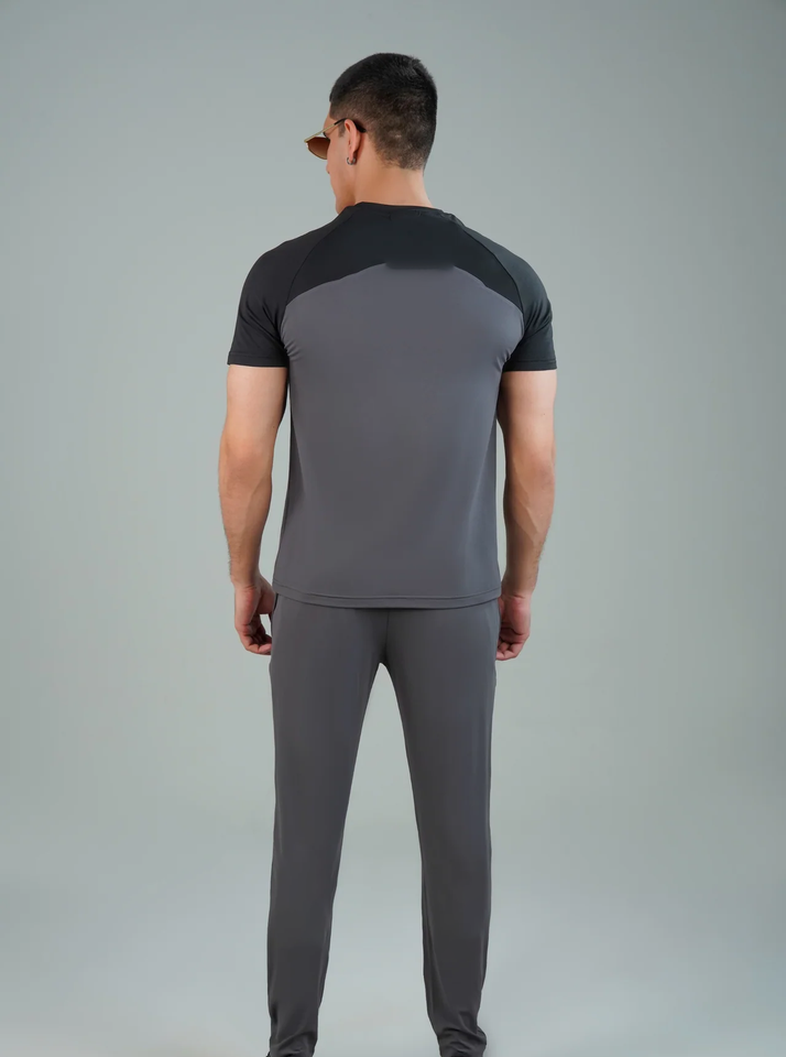 ชุดกีฬาสีเทาสุดเทรนดี้สำหรับผู้ชาย สวมใส่สบายและทันสมัย เหมาะสำหรับออกกำลังกายและกิจกรรมลำลอง