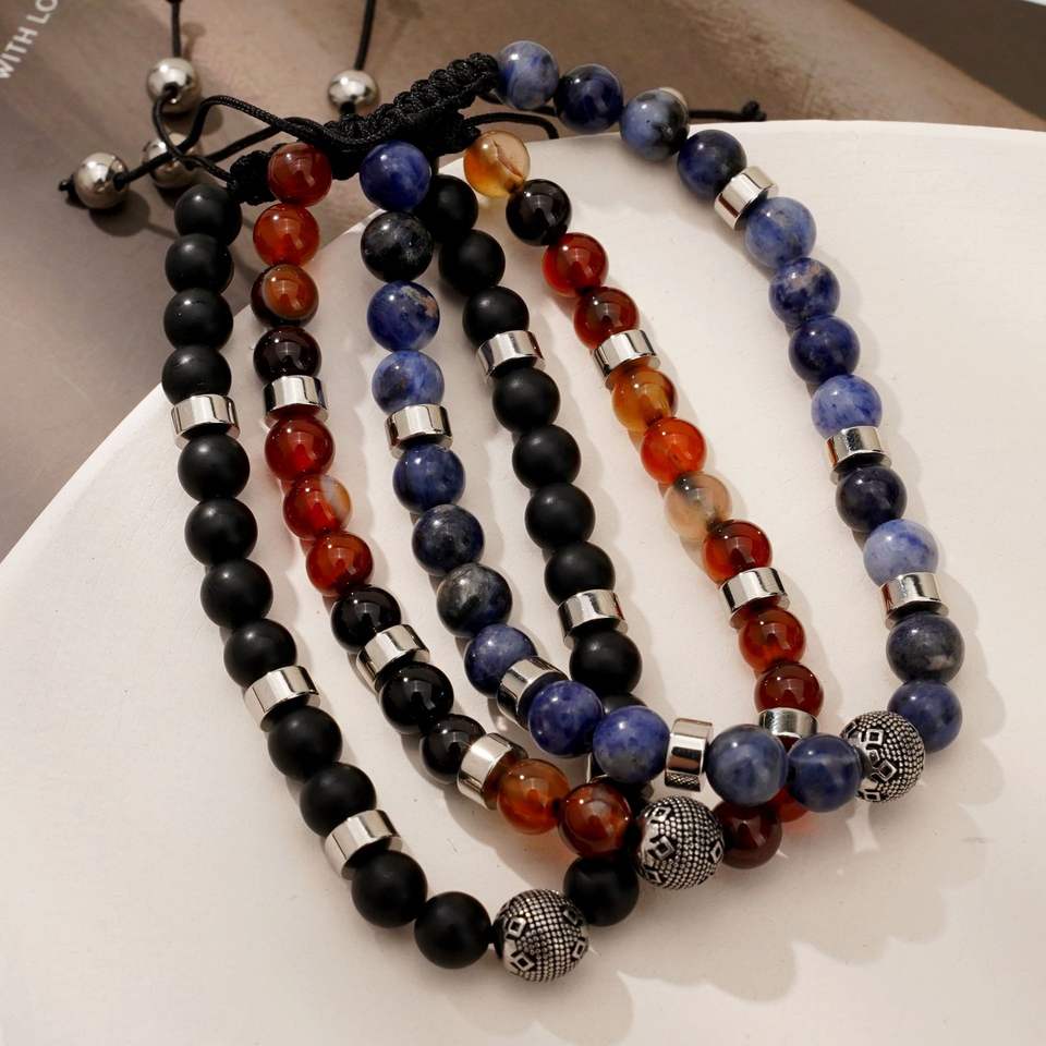 รูปร่าง รูปแบบ \:สร้อยข้อมือลูกปัดยืดหยุ่นโซดาไลต์ธรรมชาติ