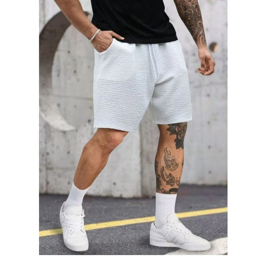 กางเกงขาสั้นลำลองผ้าเทอร์รี่ย้อมสีล้วนสำหรับผู้ชายกางเกงขาสั้นผ้าฝ้ายและผ้าลินินพิมพ์ลายแบบลำลองทันสมัย