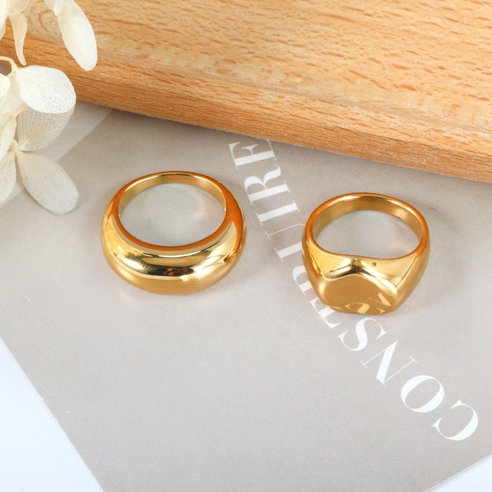 แหวนสแตนเลสสตีลชุบทอง 18k PVD รูปหัวใจ ดีไซน์ทันสมัย ขัดเงา กันน้ำ ไม่หมอง แหวนโดมเรียบหนา