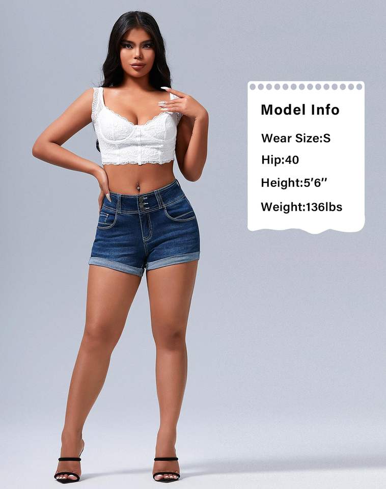 กางเกงยีนส์ขาสั้นเอวสูงทันสมัยสไตล์วินเทจของผู้หญิงกางเกงยีนส์ลำลองไซส์ใหญ่พิเศษสำหรับเครื่องแต่งกายแนวสตรีทฤดูร้อน