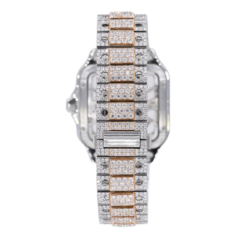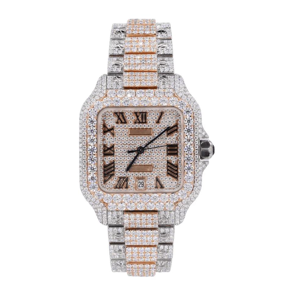 นาฬิกาข้อมือสแตนเลสสตีลหรูหรา ดีไซน์ทันสมัยสไตล์ฮิปฮอป หน้าปัดทรงสี่เหลี่ยมประดับเพชรโมอิสซาไนต์และควอตซ์เต็มหน้าปัด