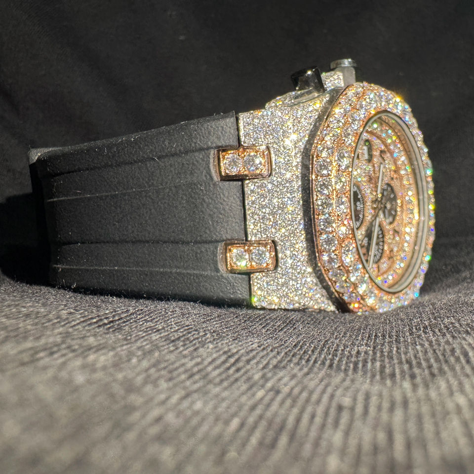 นาฬิกาข้อมือฮิปฮอปสุดเทรนดี้ประดับเพชรโมอิสซาไนต์ VVS ขอบหน้าปัดเพชรเต็มหน้าปัด สายยาง นาฬิกาควอตซ์แฟชั่นผู้ชาย ราคาขายส่งในสหราชอาณาจักร