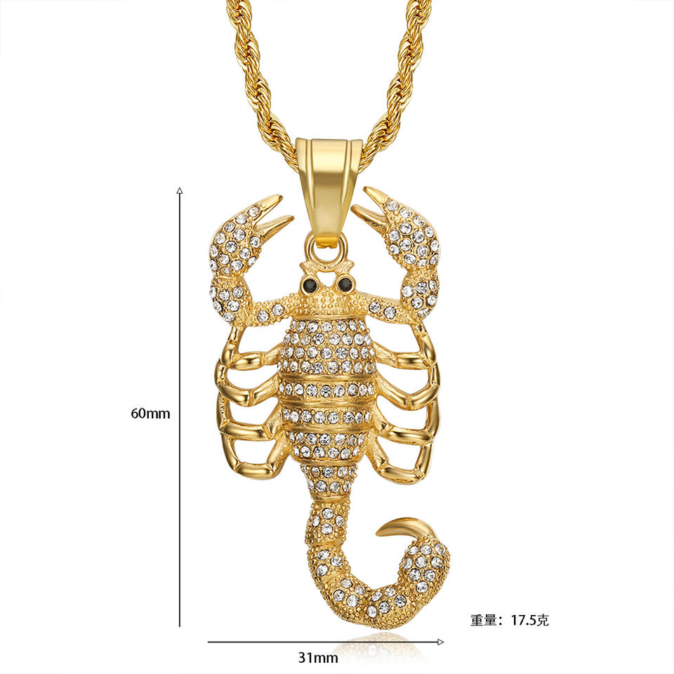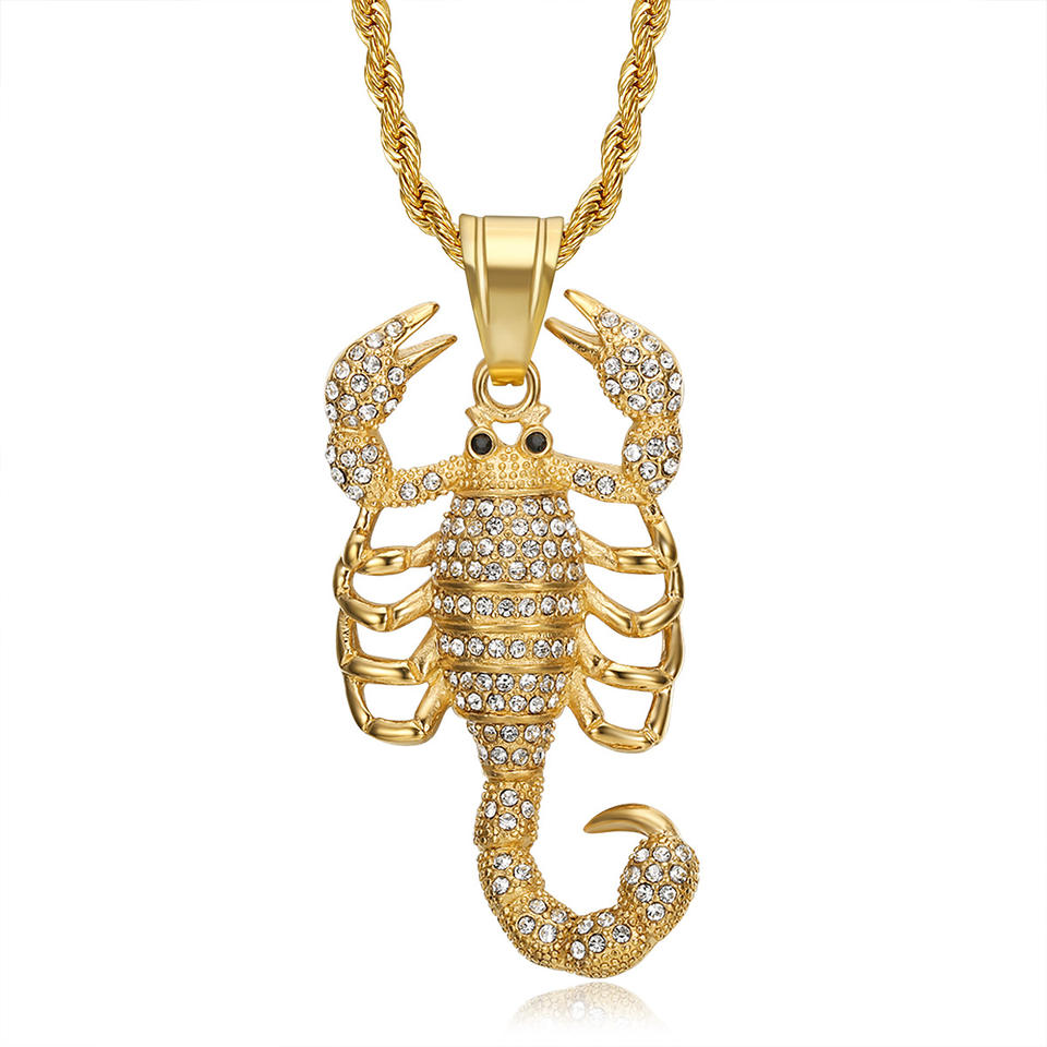 สร้อยคอจี้รูปแมงป่องประดับเพชรเทียมสไตล์ฮิปฮอปสุดเทรนดี้สำหรับผู้ชาย วัสดุสแตนเลสชุบทอง 18k ประดับคริสตัล