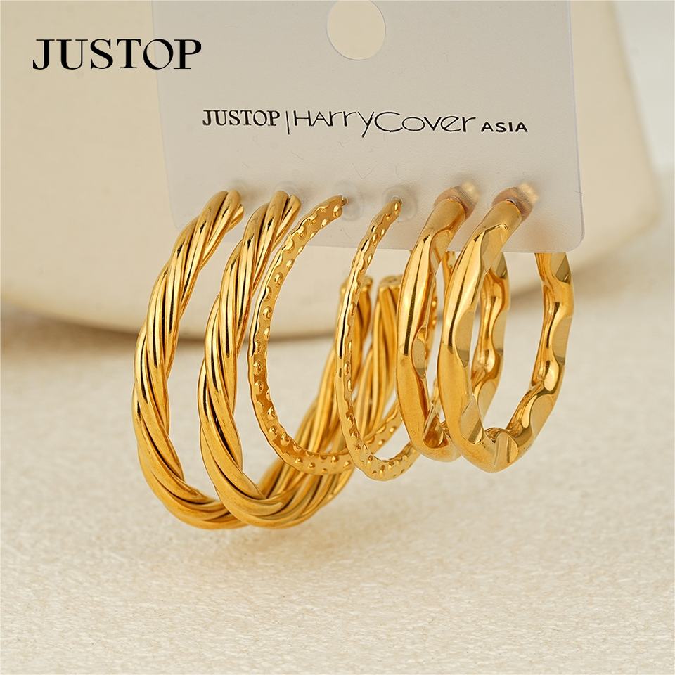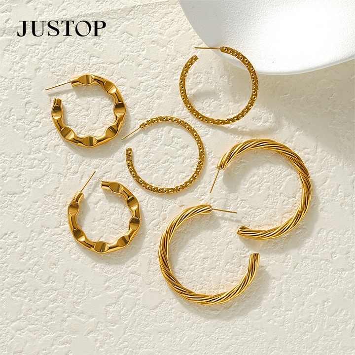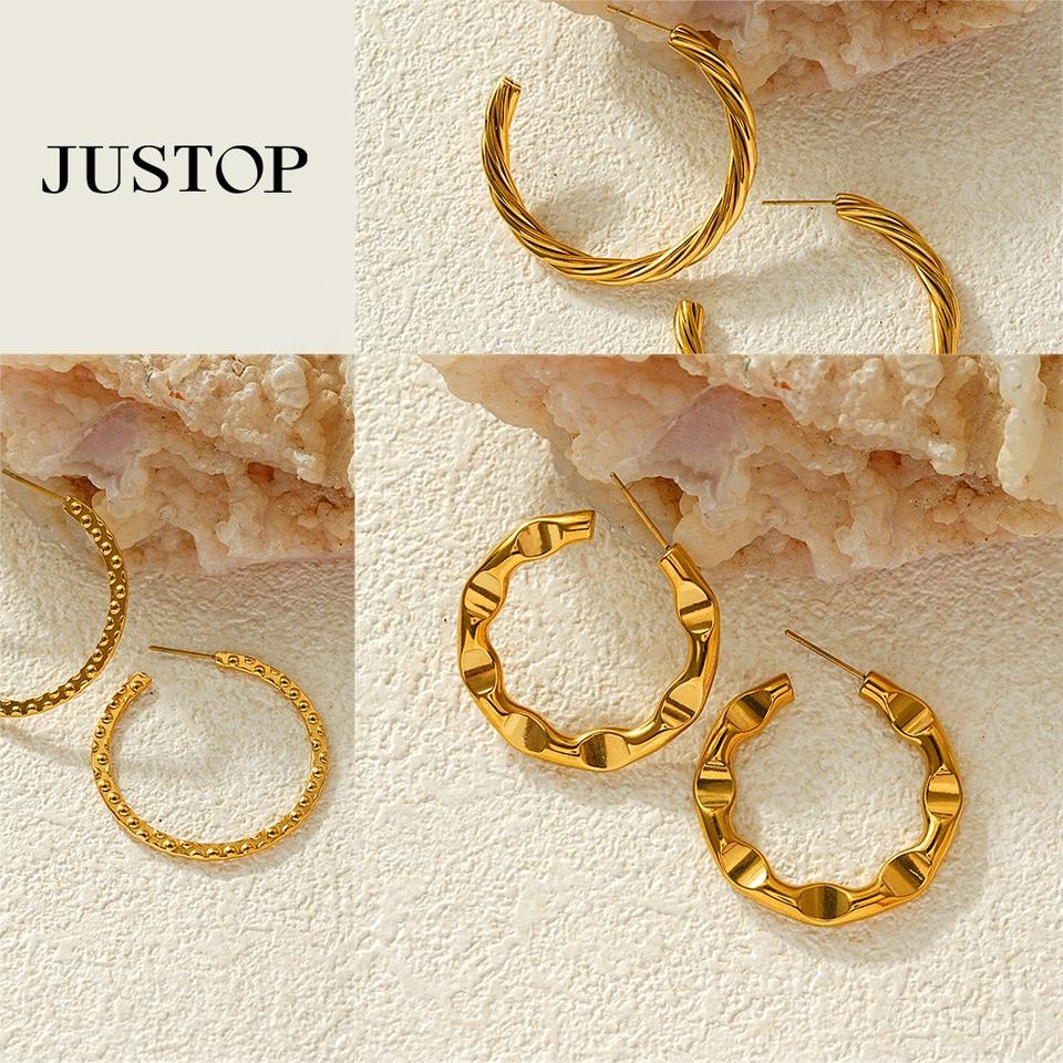 ต่างหูแบบห่วงทันสมัย ชุบทอง 18K สแตนเลสสตีล ป้องกันการแพ้ สำหรับผู้หญิง ผู้จำหน่าย JUSTOP