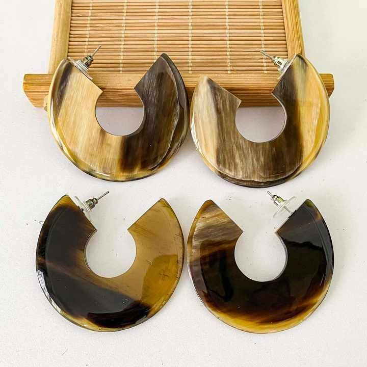 ต่างหูทำมือจากเขาควาย ดีไซน์ทันสมัย เป็นมิตรกับสิ่งแวดล้อม เครื่องประดับแฟชั่นระดับไฮเอนด์ หลากสี ราคาถูก MOQ ต่ำ สำหรับขายส่ง
