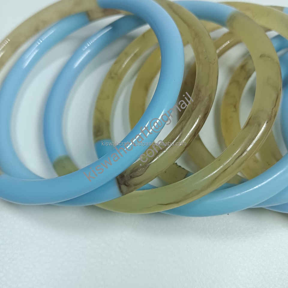 Trendy Horn Fashion Bangle Sky Blue Color Clear Resin And Wooden Fashion Bracelet for Gift Giving Use For Party Natural Bangle