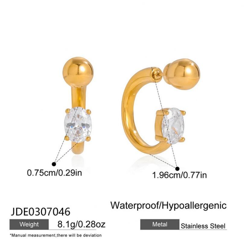 ต่างหูเพชรเซอร์คอนแบรนด์ดัง สแตนเลสสตีลเคลือบ PVD ป้องกันการแพ้ ทันสมัย ขายส่ง สำหรับผู้หญิง